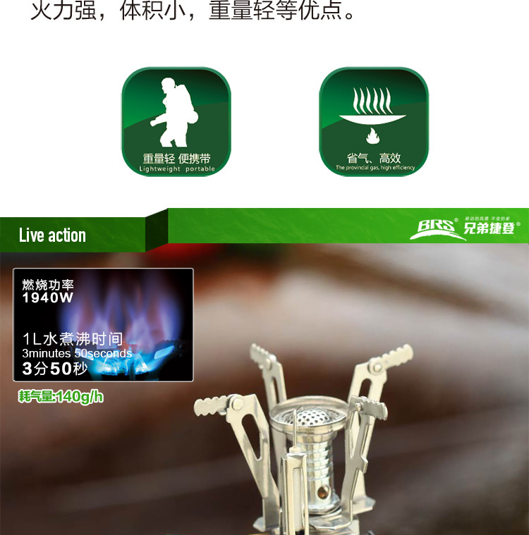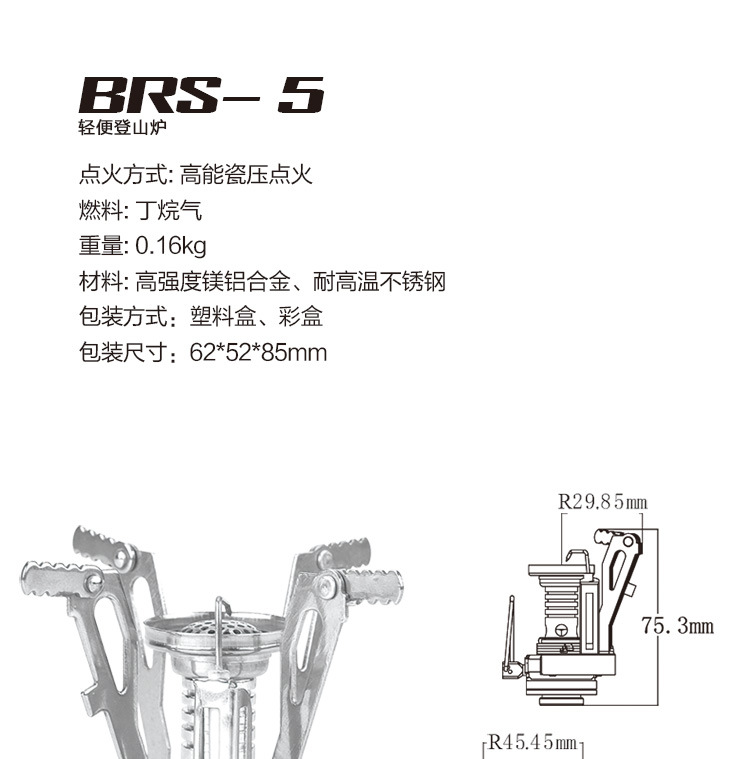Amazon BRS-5 스토브 헤드 야외 캠핑 일체형 가스 스토브(전자 야외 점화 휴대용 접이식 스토브 포함)