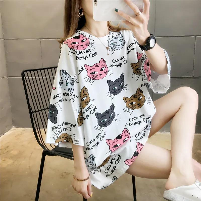 통통한 자매 플러스 사이즈 150.00kg 반팔 티셔츠 한국 여성 여름 옷 우아한 배 덮음 느슨한 트렌디 탑스토어 가기