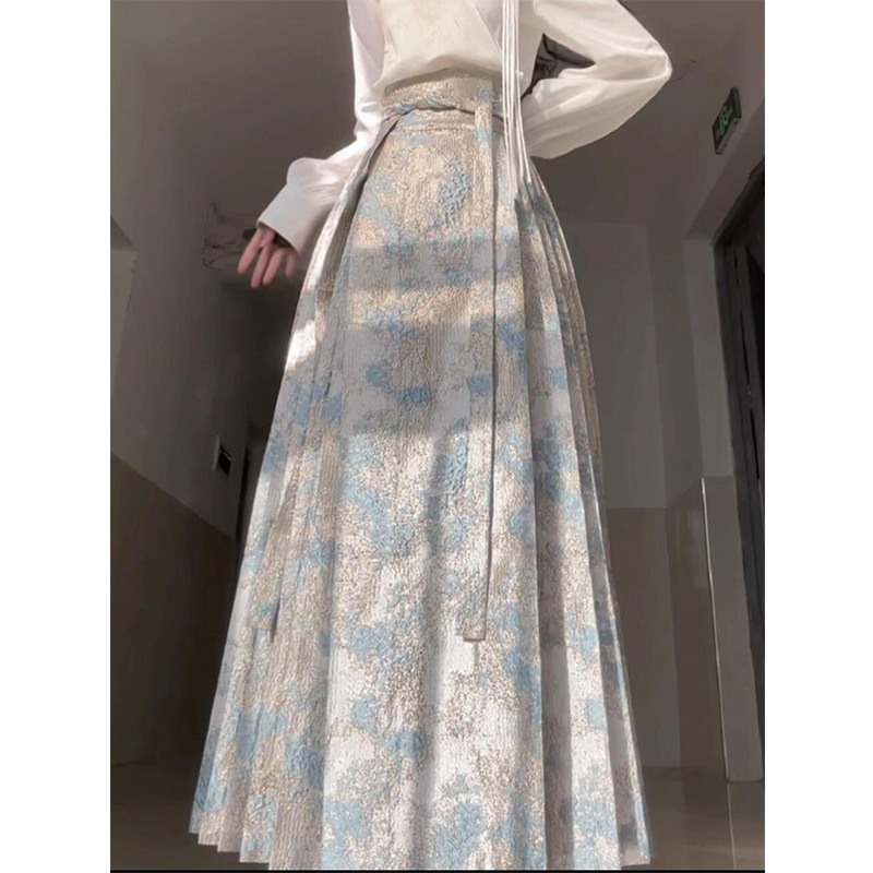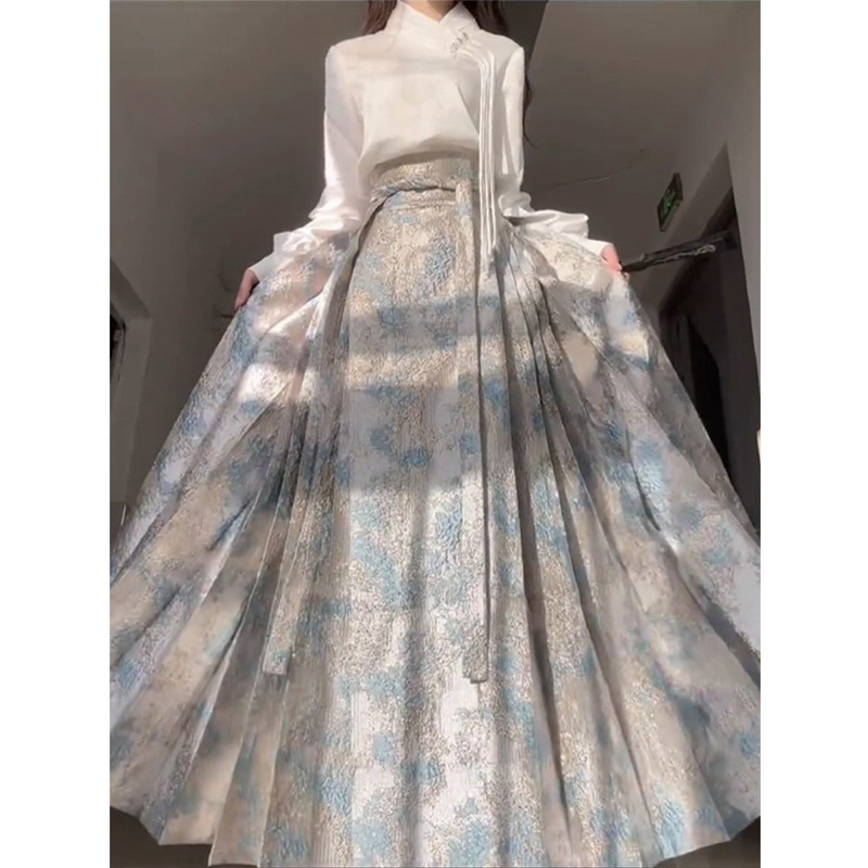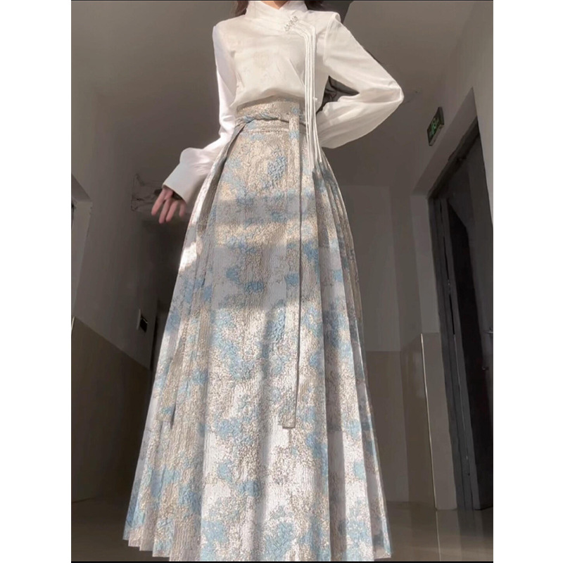새로운 중국 스타일 국가 스타일 말 얼굴 치마 세트 여성 봄과 가을 하이 엔드 우아한 긴팔 셔츠 반쪽 길이 스커트 투피스 세트스토어 가기