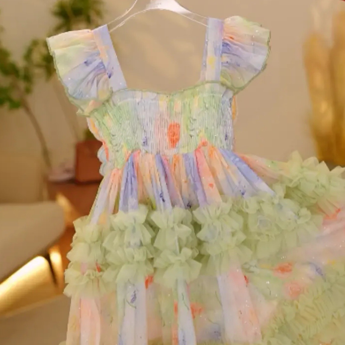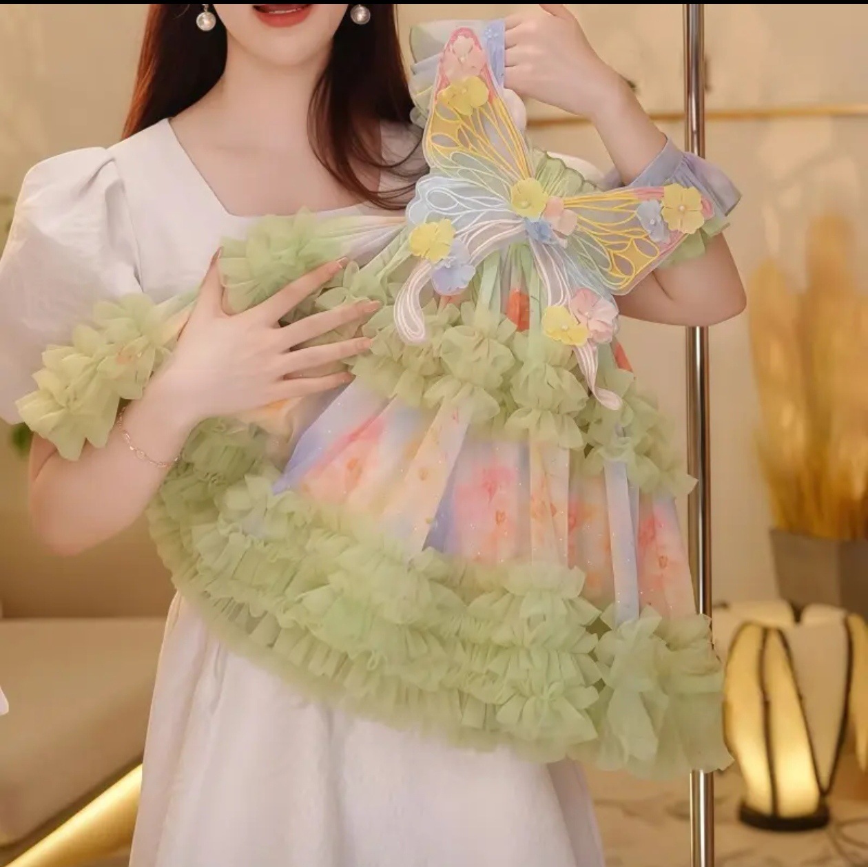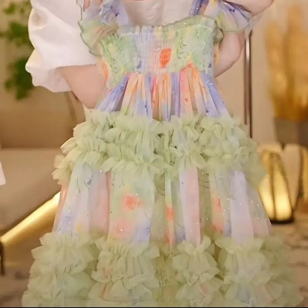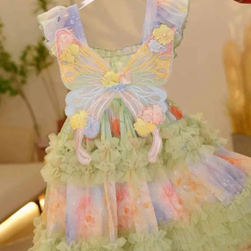 소녀 원피스 여름 원피스 2025 어린이 사이버 빨간 나비 슬립 스커트 소녀의 판초 메쉬 공주 스커트스토어 가기