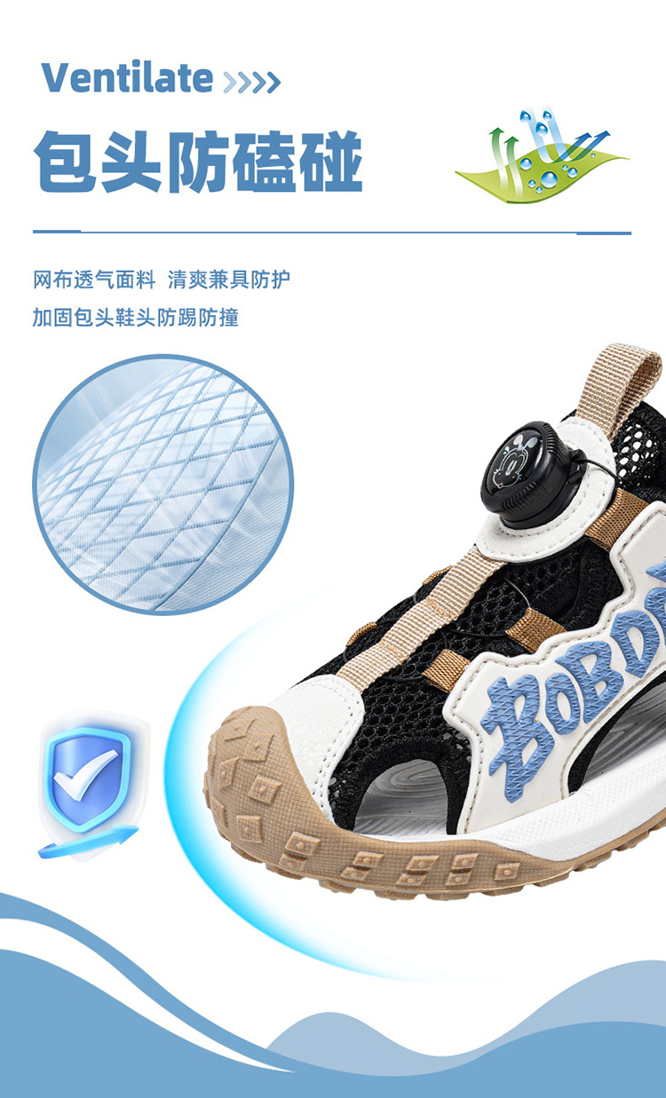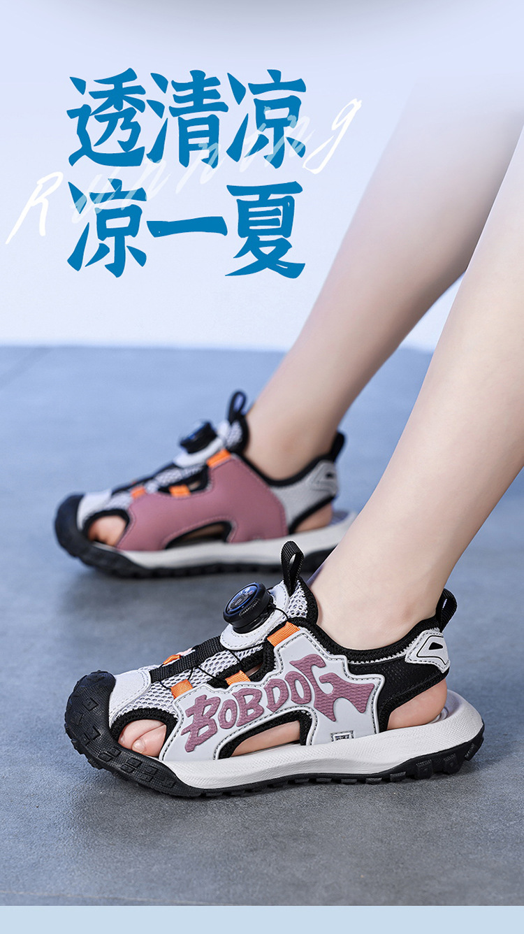 바부 빈 걸스 바오 터우 샌들 2025 여름 새로운 스타일 중대형 소년 어린이 스포츠 미끄럼 방지 비치 슈즈