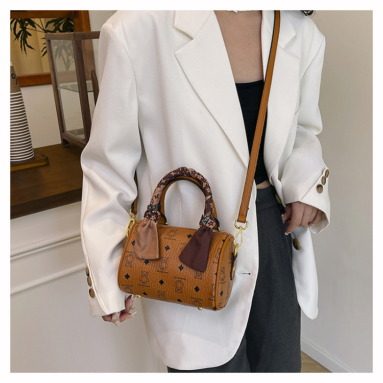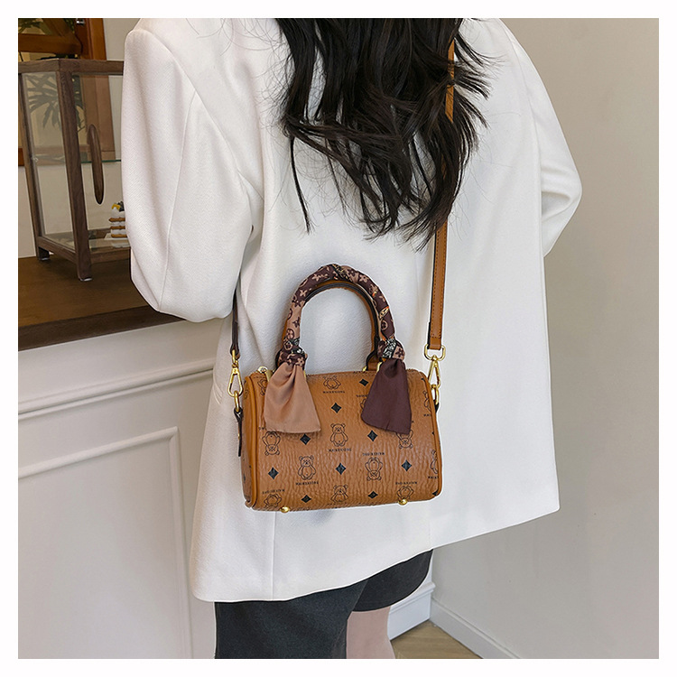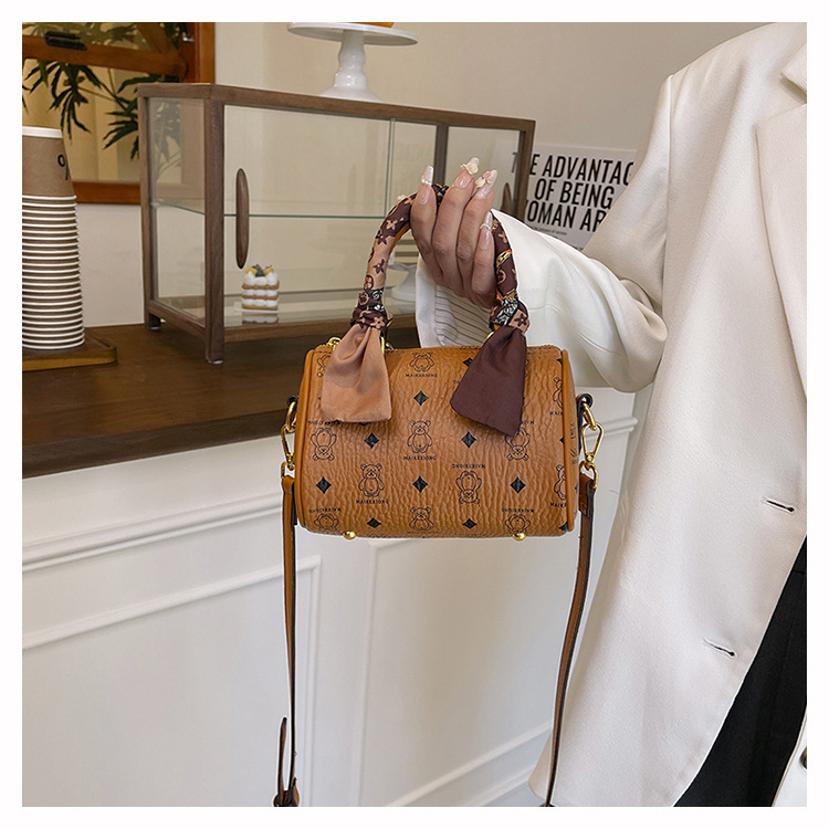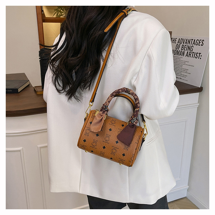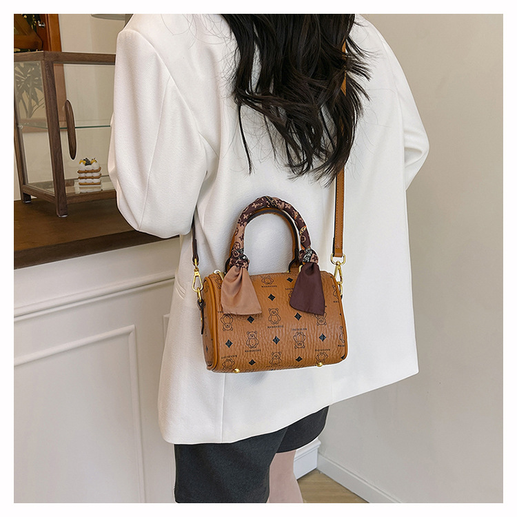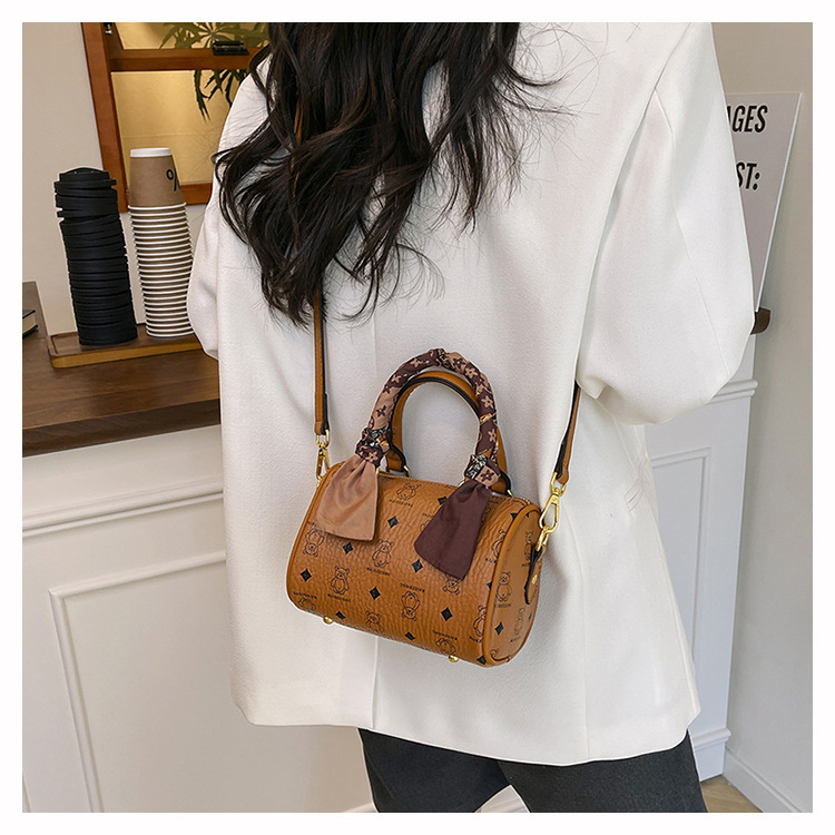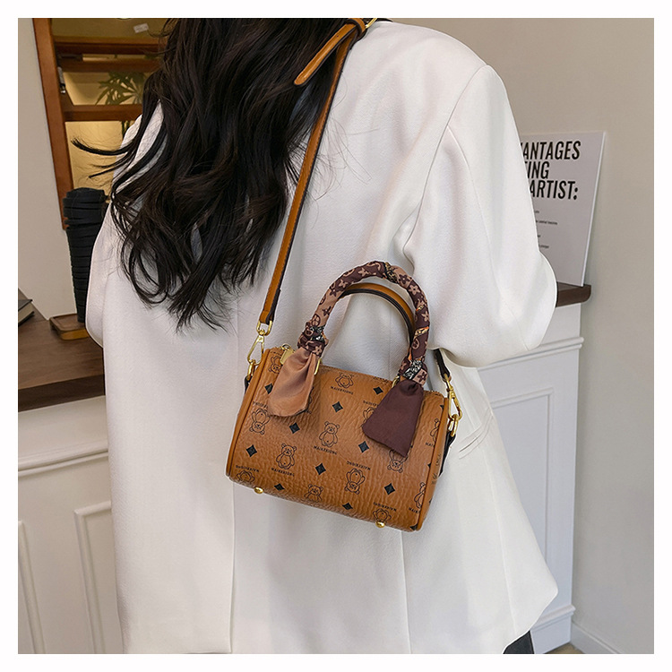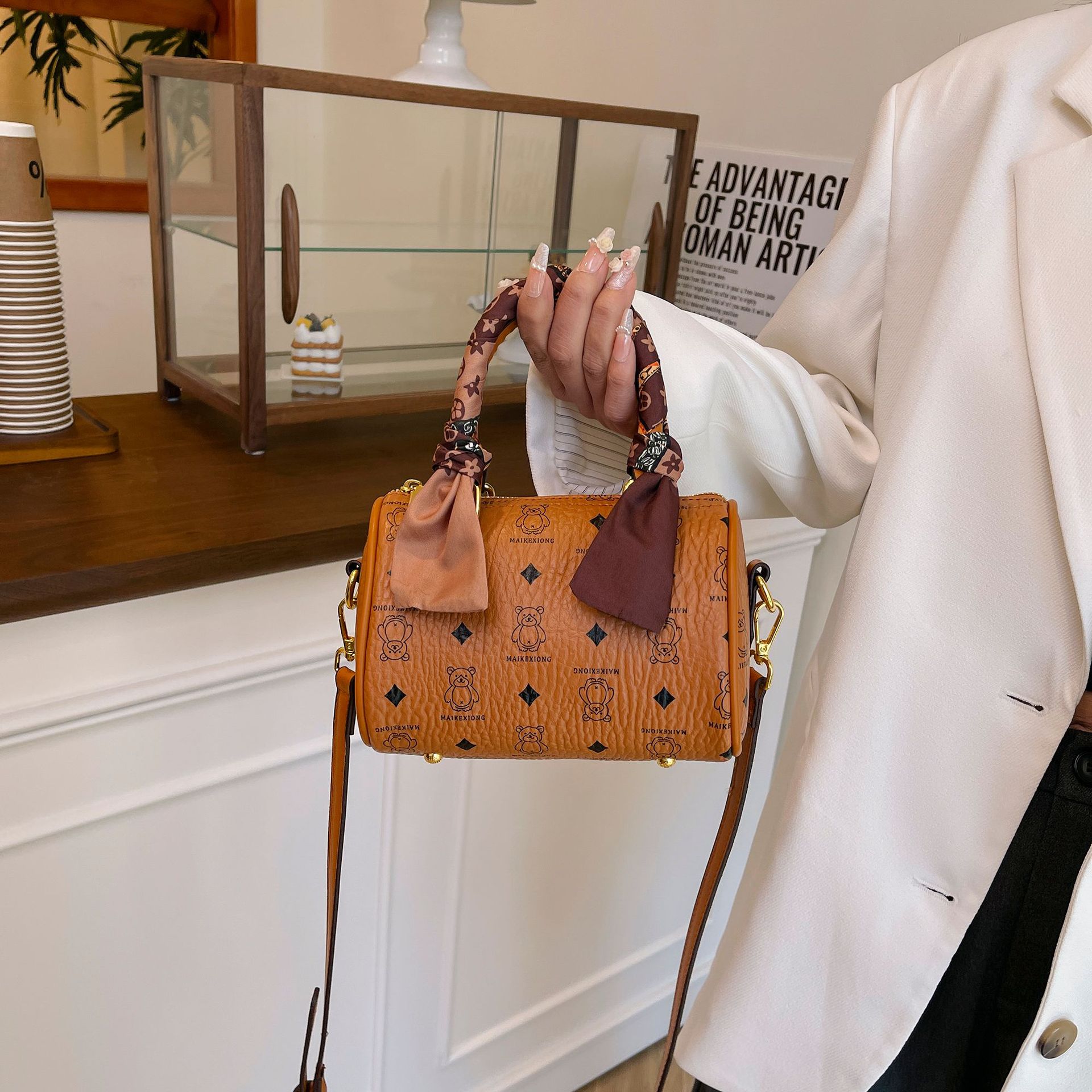 레트로 휴대용 보스턴 가방 부드러운 가죽 인쇄 숙녀 베개 가방 2025 새로운 만화 곰 패션 Crossbody 가방