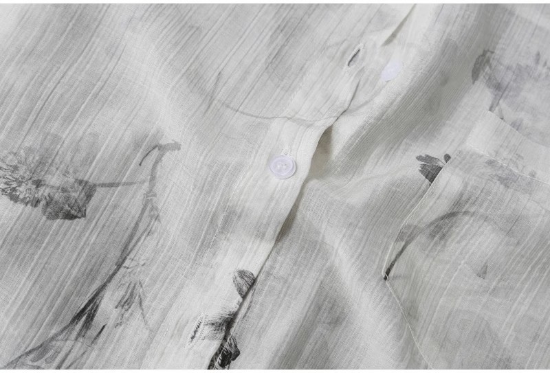 중국식 인쇄 된 태양 보호 의류 텐셀 셔츠 여성의 여름 느슨한 얇은 외부 적합 에어컨 셔츠 여성용 탑