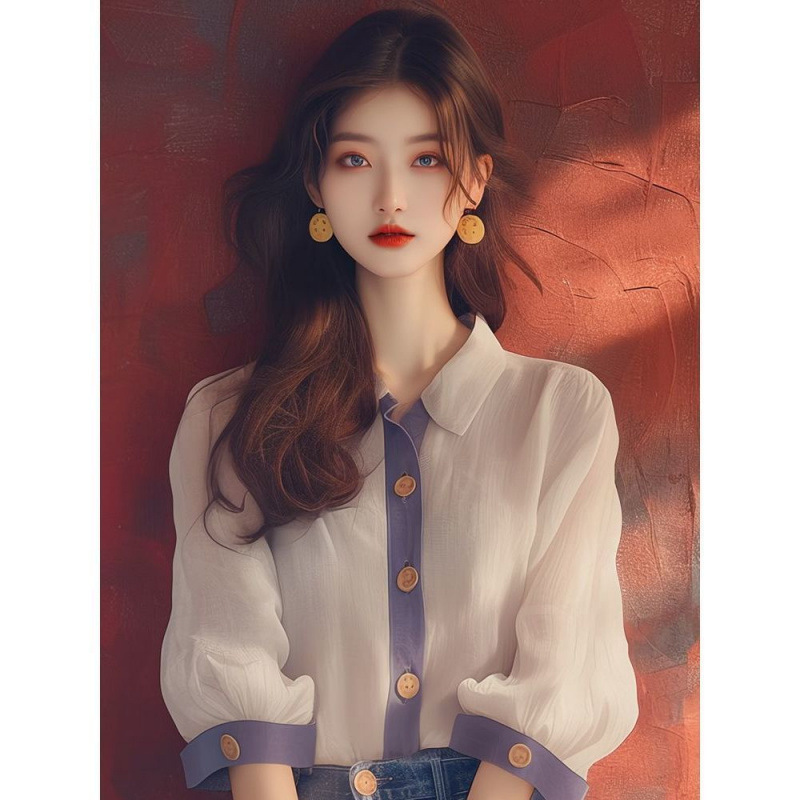 프랑스 스타일 폴로 칼라 쉬폰 셔츠 여성 하이 엔드 디자인 센스 틈새 독특한 봄과 가을 세련된 느슨한 반소매 탑