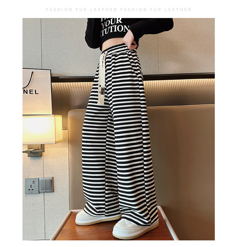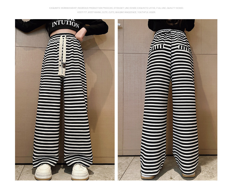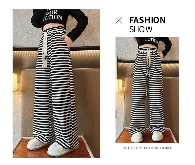 여아 2025 신작 봄 가을 바지, 중대형 아동용 봄 아우터, 흑백 줄무늬 와이드 팬츠, 아동용 스트레이트 바지스토어 가기
