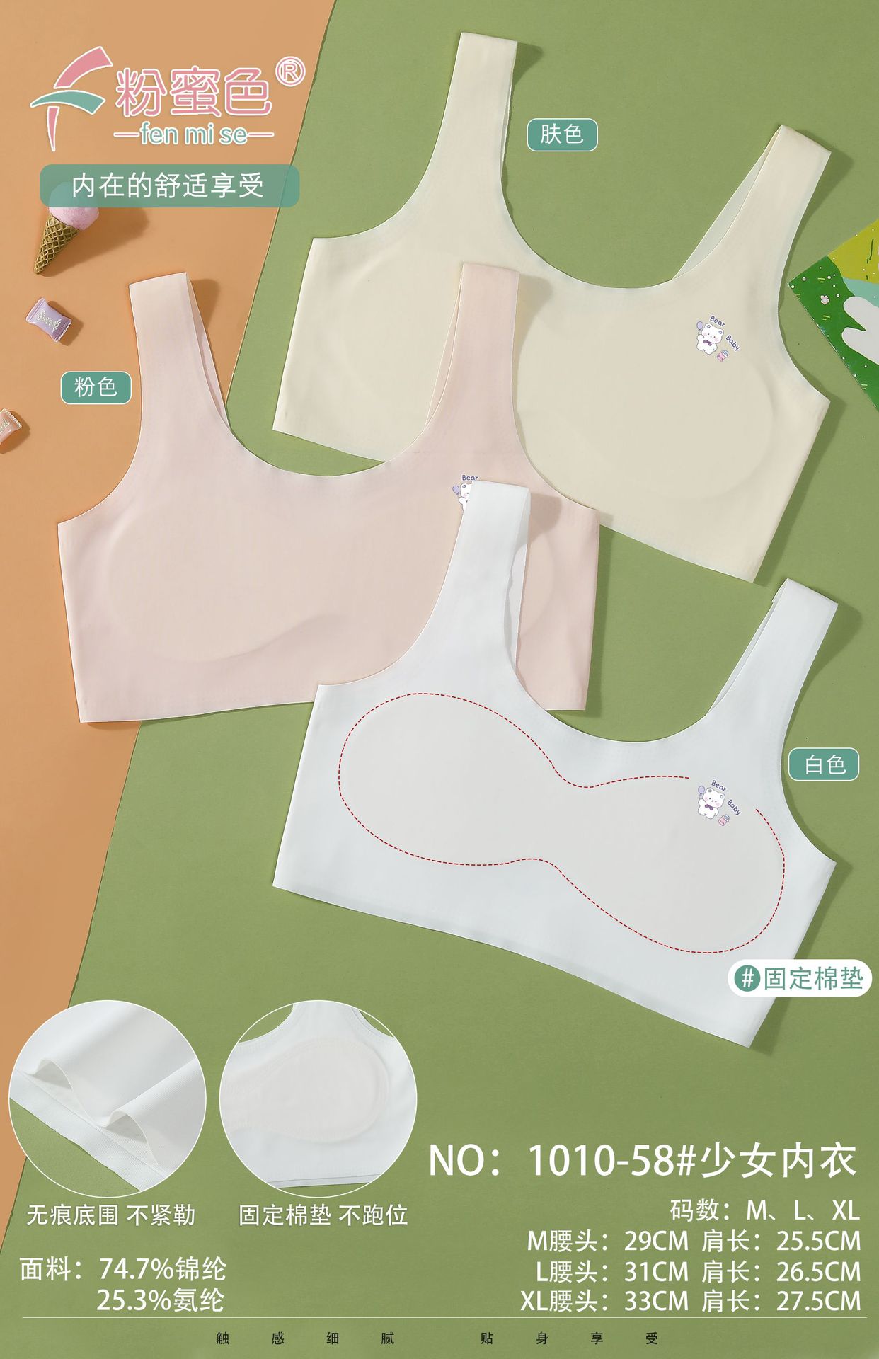 핑크 허니 컬러 소녀 여름 얇은 작은 가슴 원활한 브래지어 얼음 실크 발달 단계 1 어린이 속옷 고정 학생스토어 가기