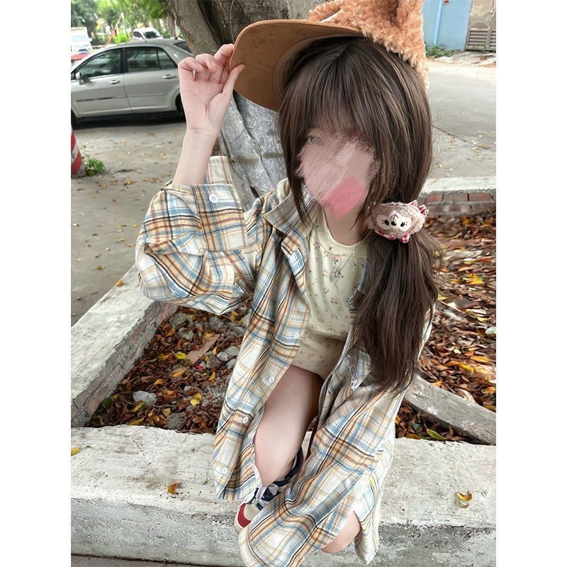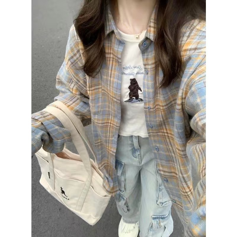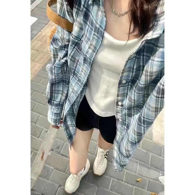 가을 2025 새로운 빈티지 격자 셔츠 여성용 코트 긴 소매 얇은 카디건 탑 느슨한 게으른 스타일 셔츠스토어 가기