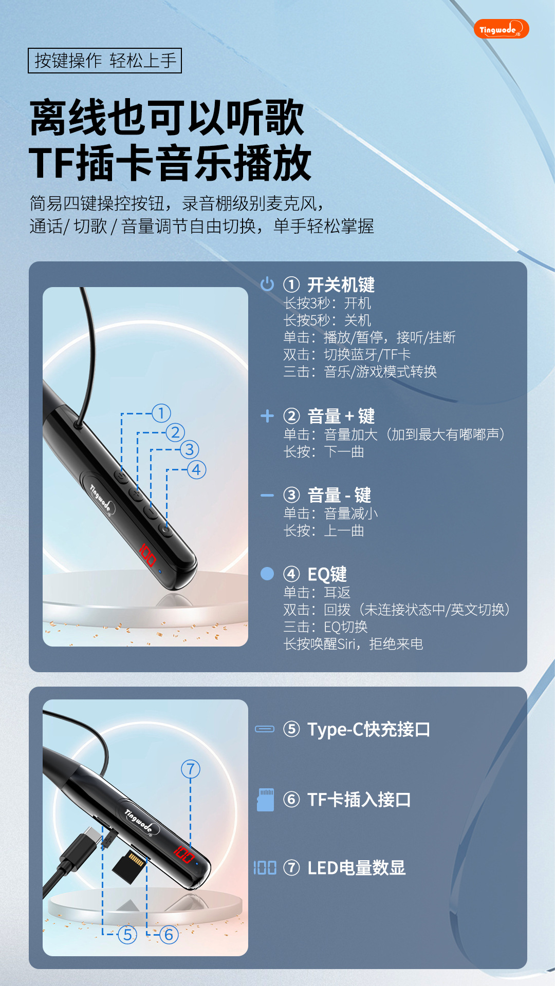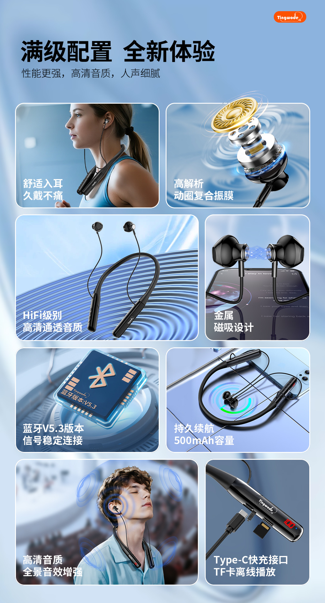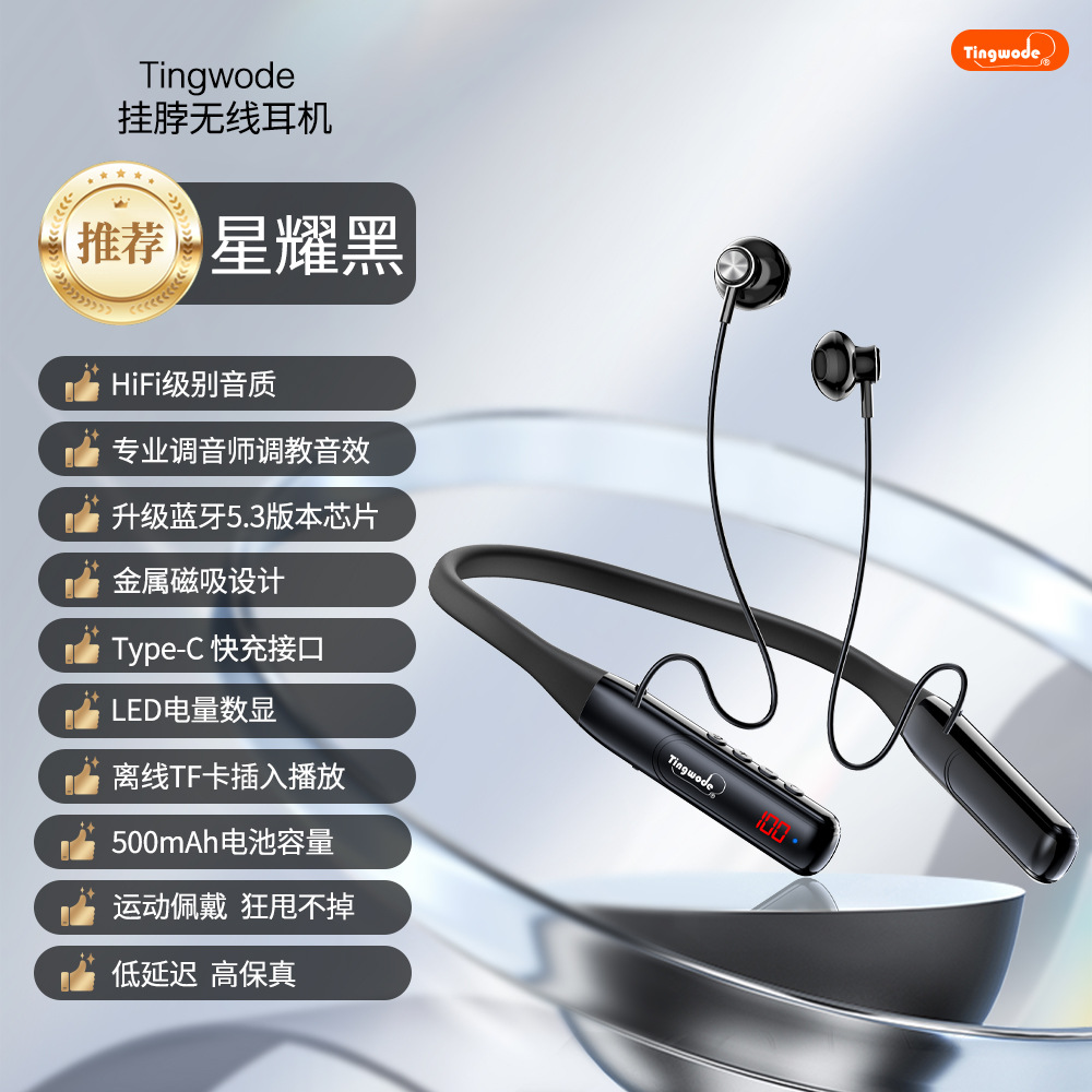 국경을 넘는 새로운 스타일의 홀터넥 블루투스 헤드셋, 고품질 음악 감상용 투인원, 매우 긴 배터리 수명, 카드 삽입형 스포츠 헤드셋