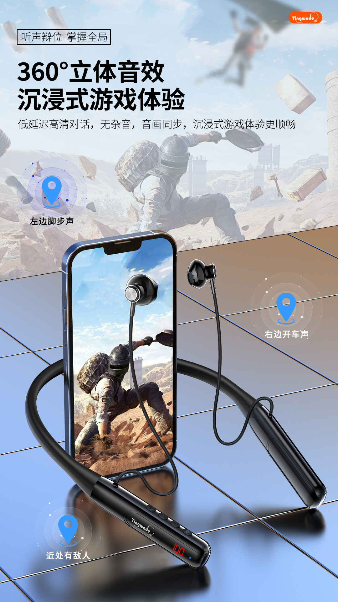 국경을 넘는 새로운 스타일의 홀터넥 블루투스 헤드셋, 고품질 음악 감상용 투인원, 매우 긴 배터리 수명, 카드 삽입형 스포츠 헤드셋스토어 가기