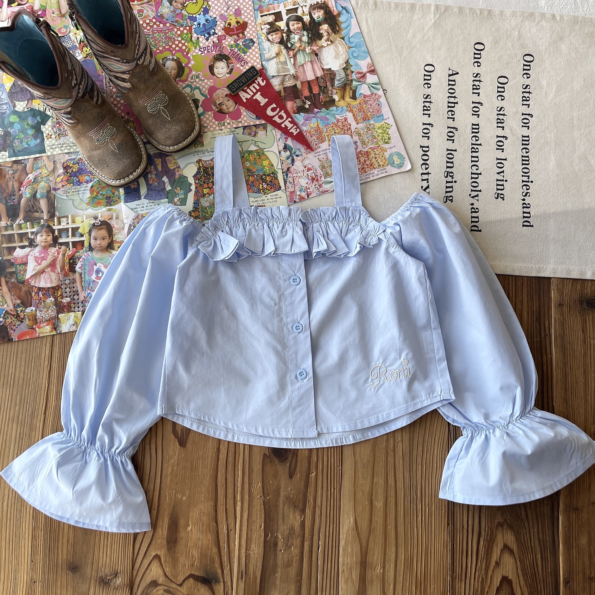 [재고 있음] 일본 중고 아동복 RONI 여아 연잎 칼라 원숄더 셔츠