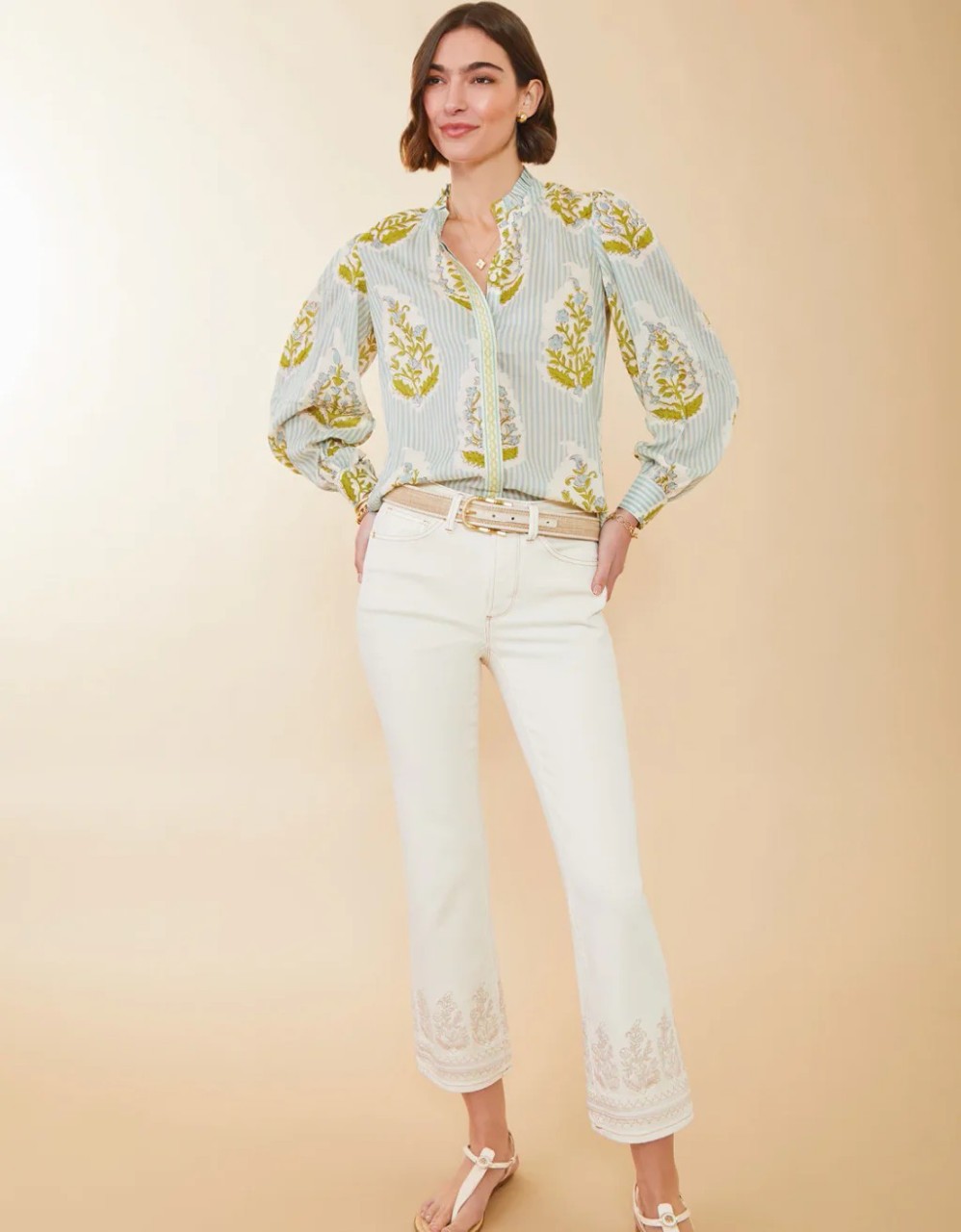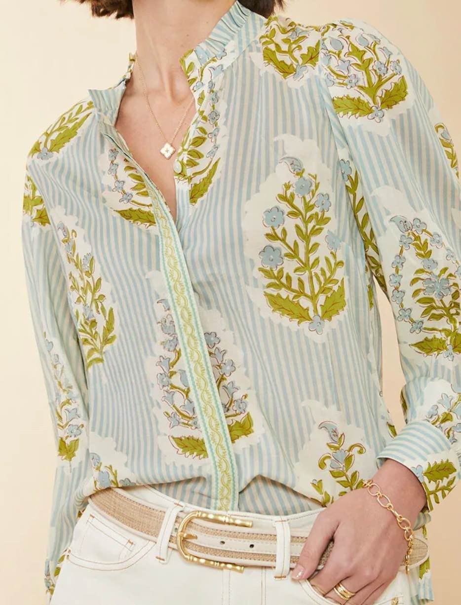 2025 봄 유럽과 미국 패션 새로운 줄무늬 꽃 프린트 긴 소매 셔츠
