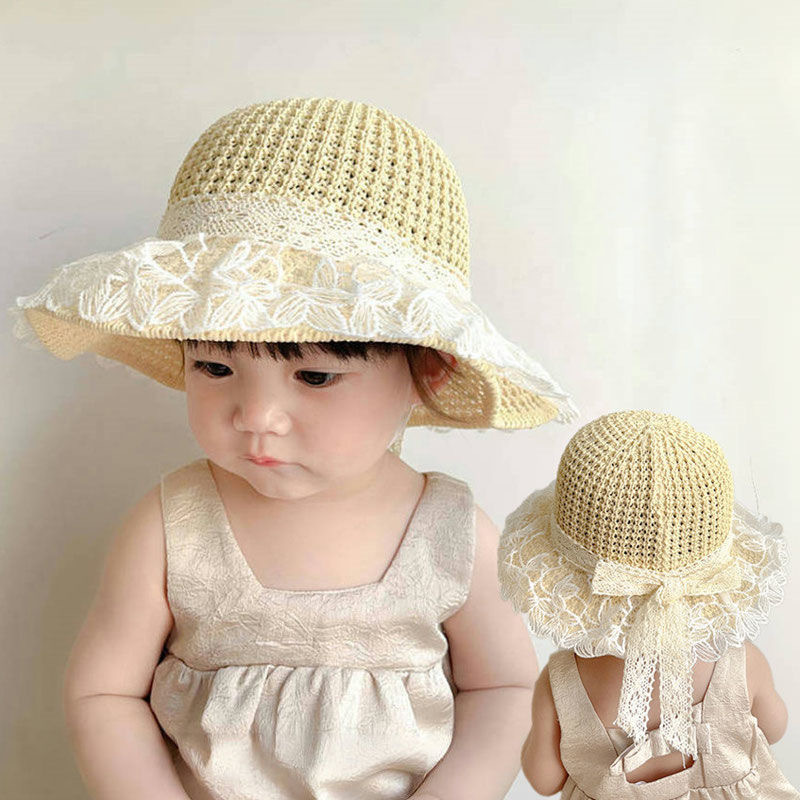 아기 소녀 태양 모자 여름 얇은 소녀 태양 모자 멋진 모자 태양 모자 귀여운 해변 공주 어린이 밀짚 모자스토어 가기