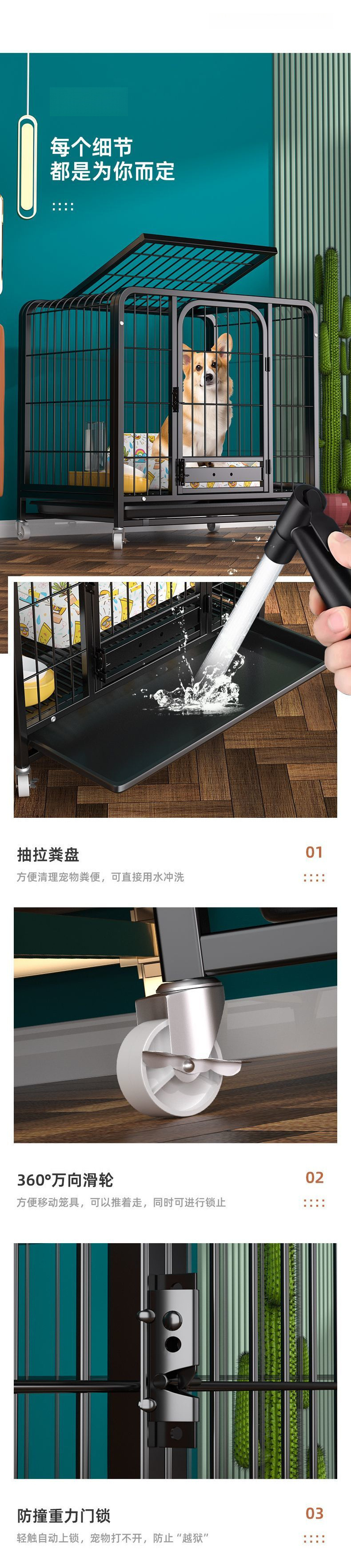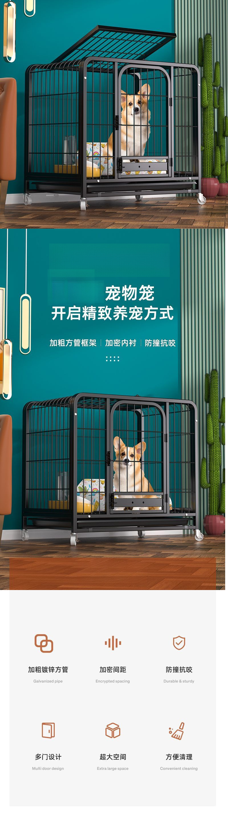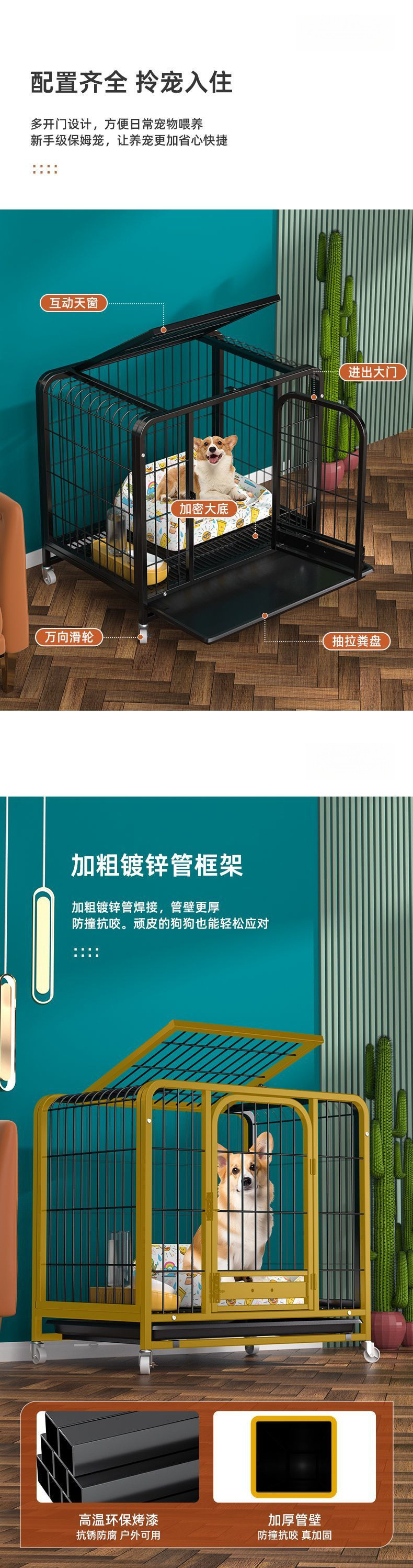 소형견, 중형견, 대형견용 개집, 화장실 포함, 가정용 두껍고 강화된 테디 비숑 골든 리트리버 코기 애완동물 케이지스토어 가기