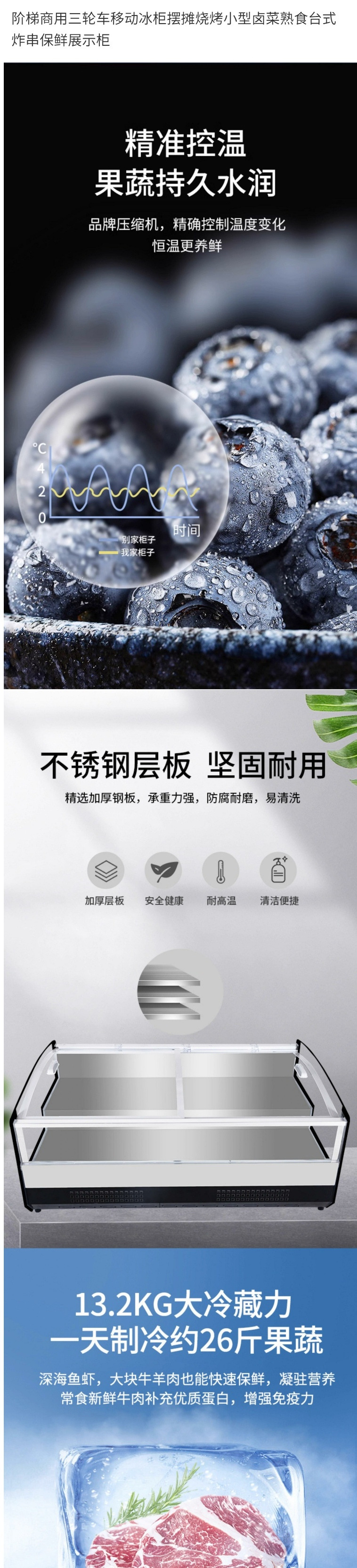 계단식 상업용 삼륜차 이동식 냉동고, 바비큐, 소형 조림 야채 및 조리 식품, 대만식 꽈배기 신선 보관 쇼케이스