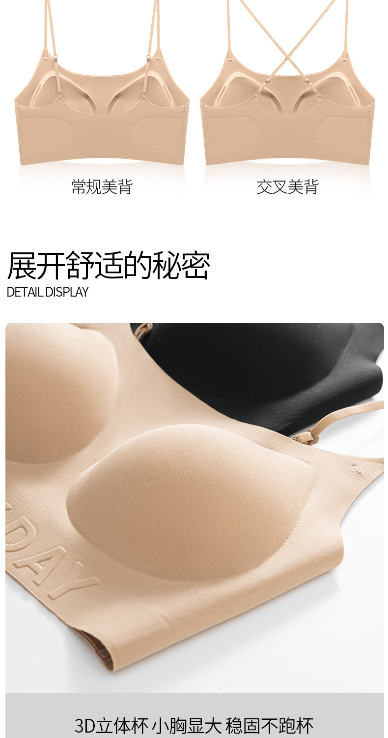 얇은 어깨 끈 연장 속옷 4cm 두께의 컵 가슴 패드 작은 가슴은 큰 U 자형 십자가 아름다운 뒤 액체 기초 브래지어를 모았습니다.