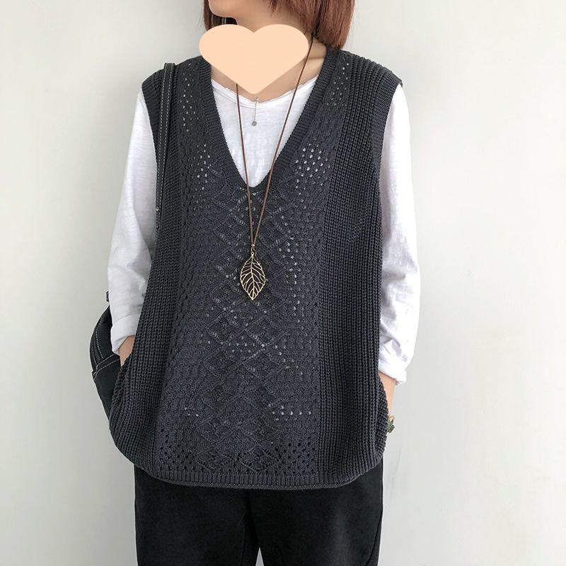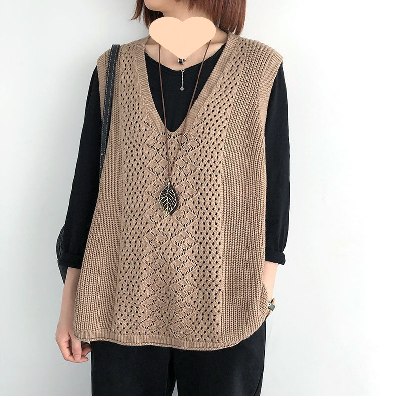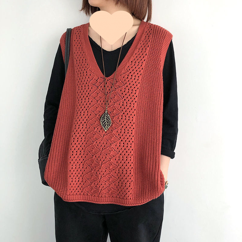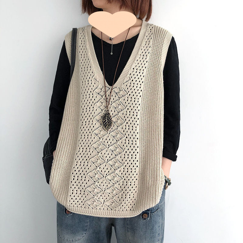 여성용 니트 조끼 얇은 느슨한 플러스 사이즈 할로우 민소매 여성 조끼 새 스타일 아우터 칼라 웨이스트 코트