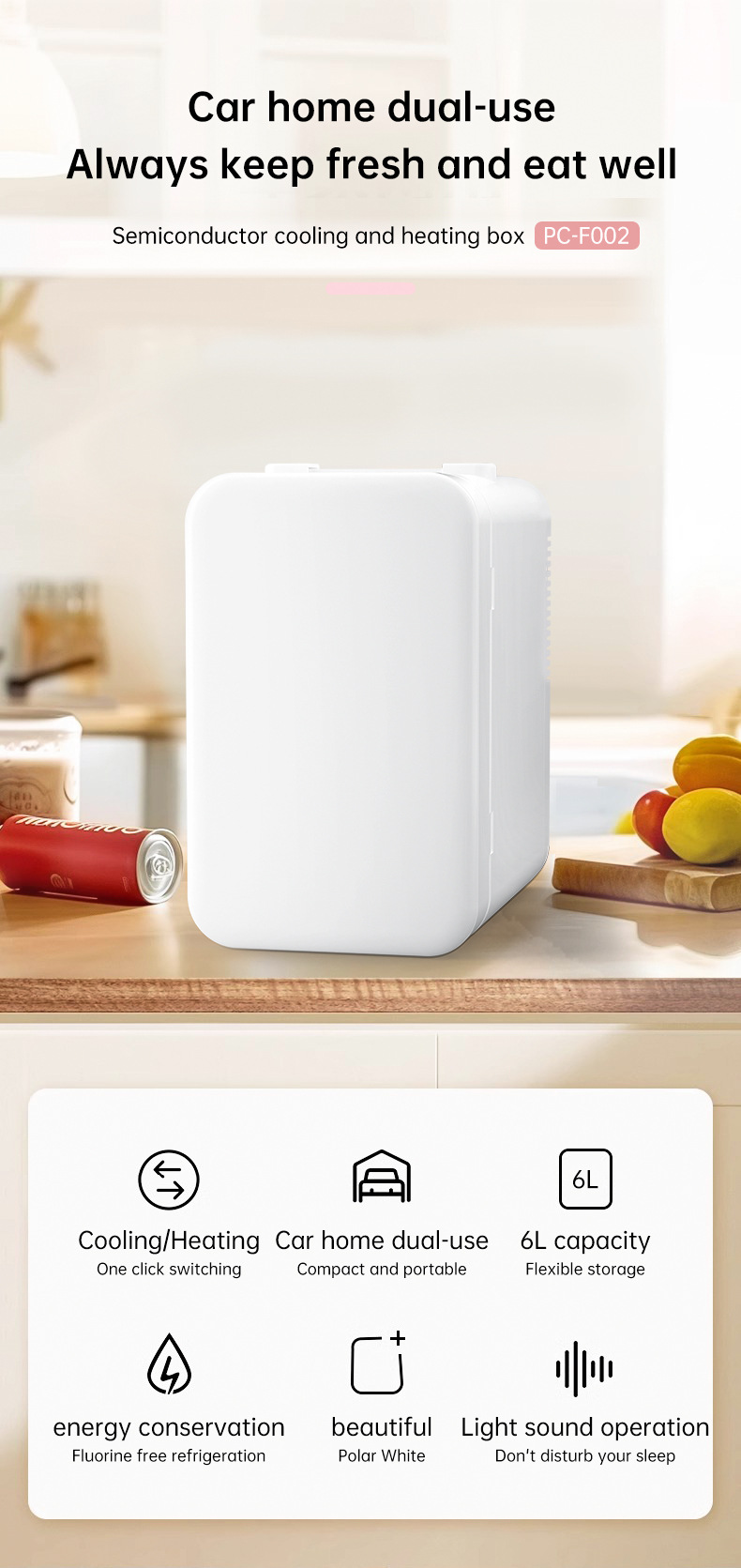 자동차 냉장고 6L 미니 냉장고 사무실 기숙사 야외 캠핑카 홈 이중 용도 미용 냉난방 냉장고