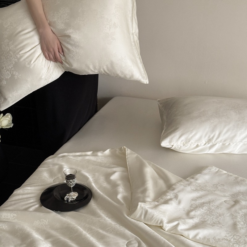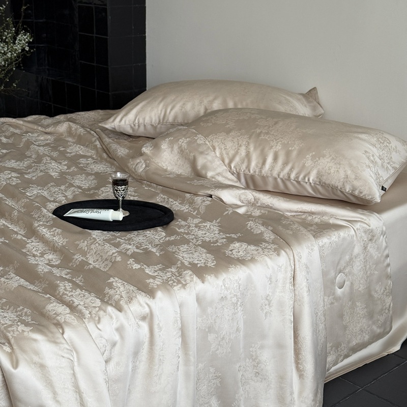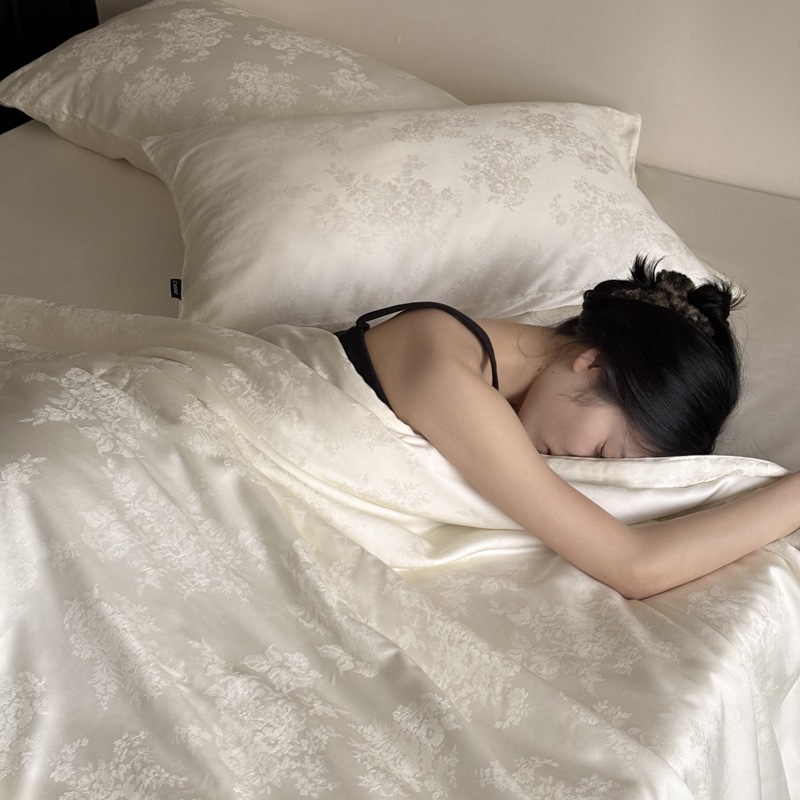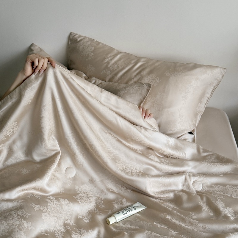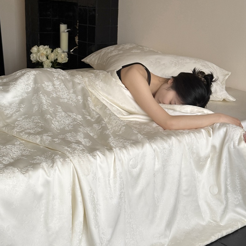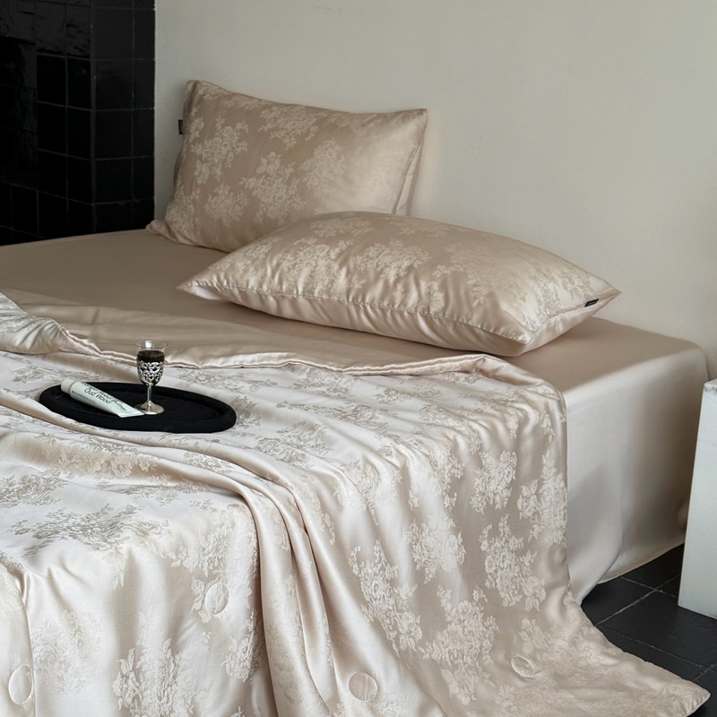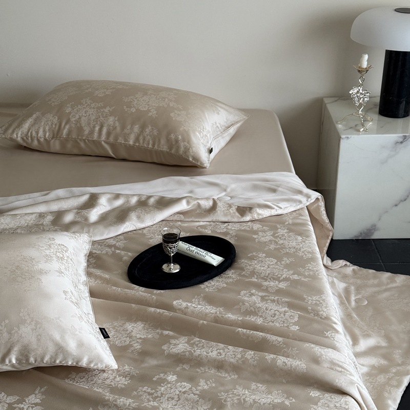 提花设计巧妙,将浅海繁花栩栩如生地呈现在被面上,每一处花纹都有着浮雕般的立体感,营造出独特的肌理感与光泽感,随着视角变化,花纹若隐若现若即若离的视觉体验,仿佛一头扎进温柔的夏日浅海,被浪漫繁花簇拥,轻松解锁夏日好眠