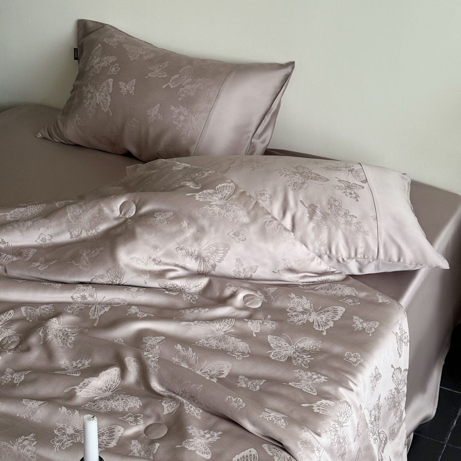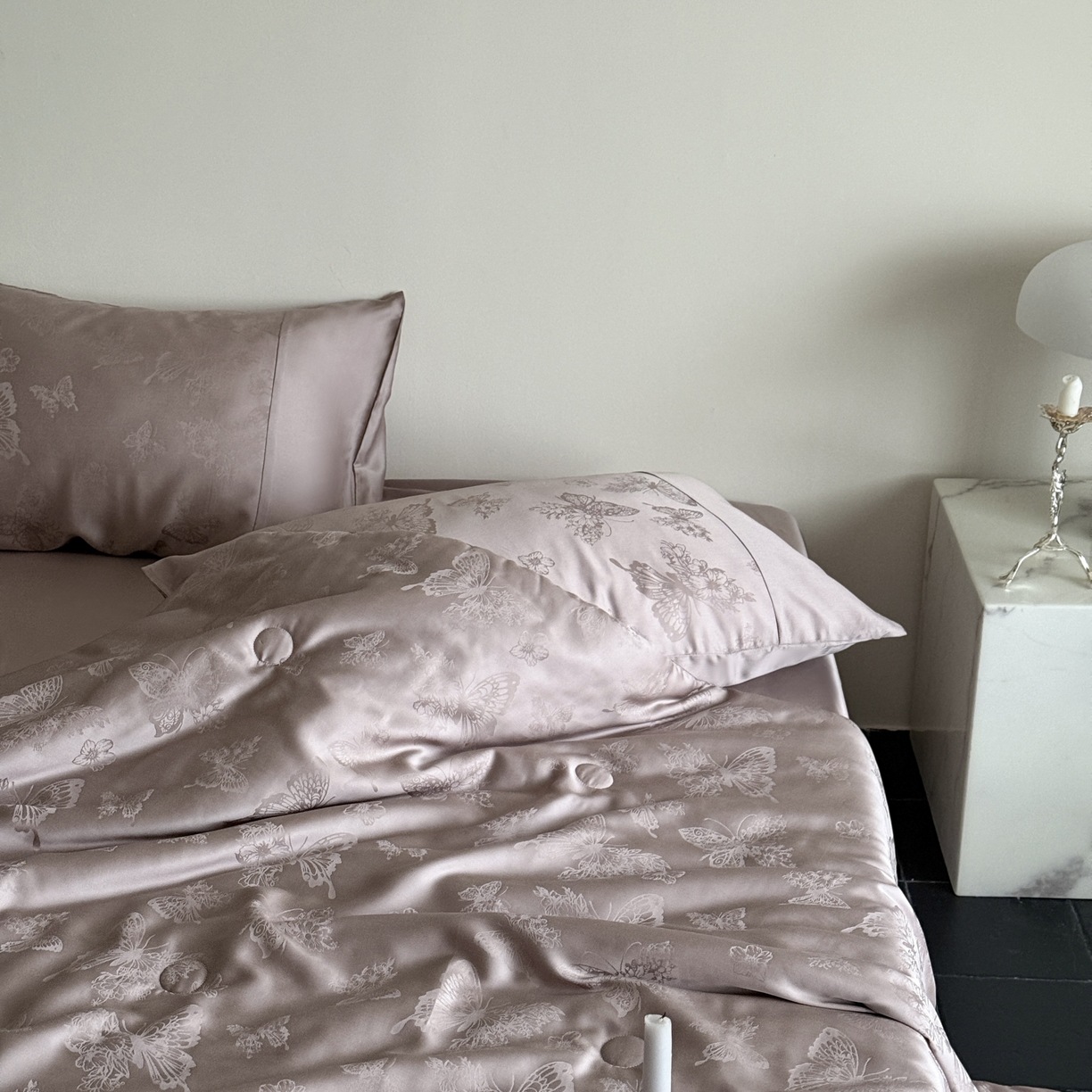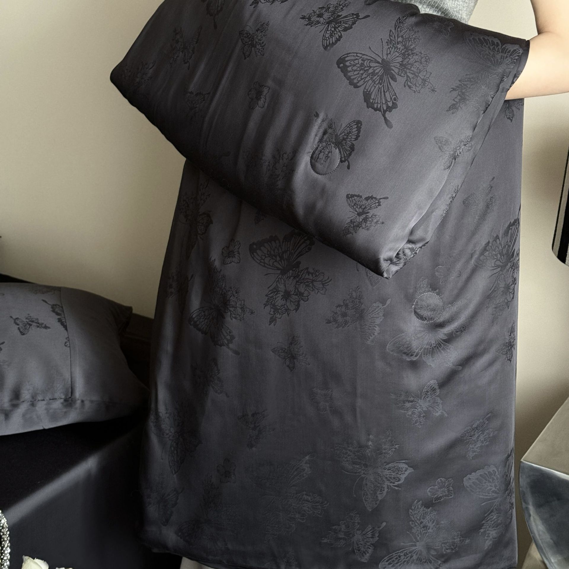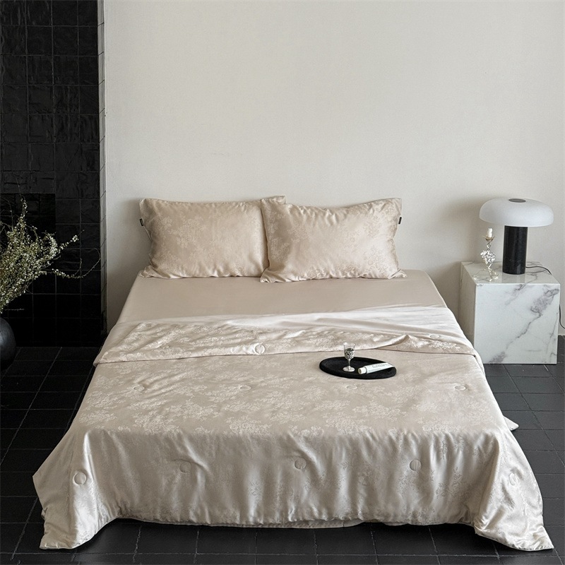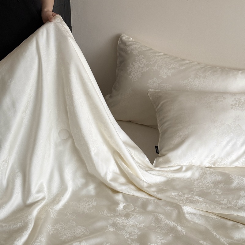 提花设计巧妙,将浅海繁花栩栩如生地呈现在被面上,每一处花纹都有着浮雕般的立体感,营造出独特的肌理感与光泽感,随着视角变化,花纹若隐若现若即若离的视觉体验,仿佛一头扎进温柔的夏日浅海,被浪漫繁花簇拥,轻松解锁夏日好眠