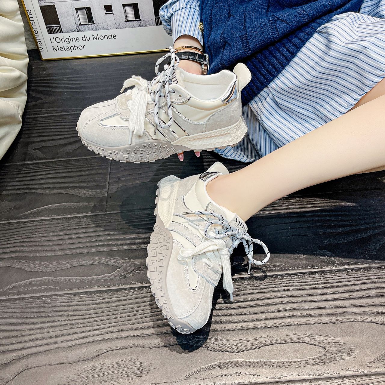 여성용 8cm 높이 증가 도덕 훈련 신발 2025 새로운 포레스트 검프 신발 작은 신발 복고풍 캐주얼 스포츠 아빠 신발스토어 가기