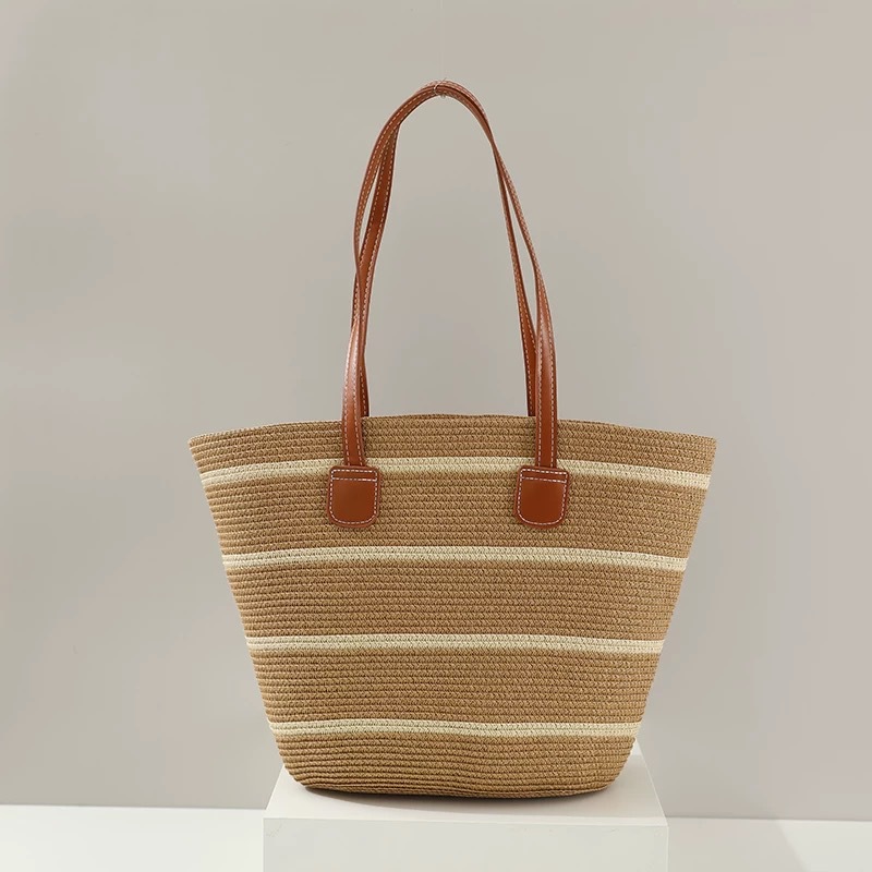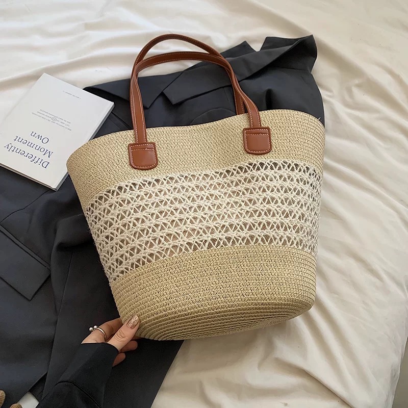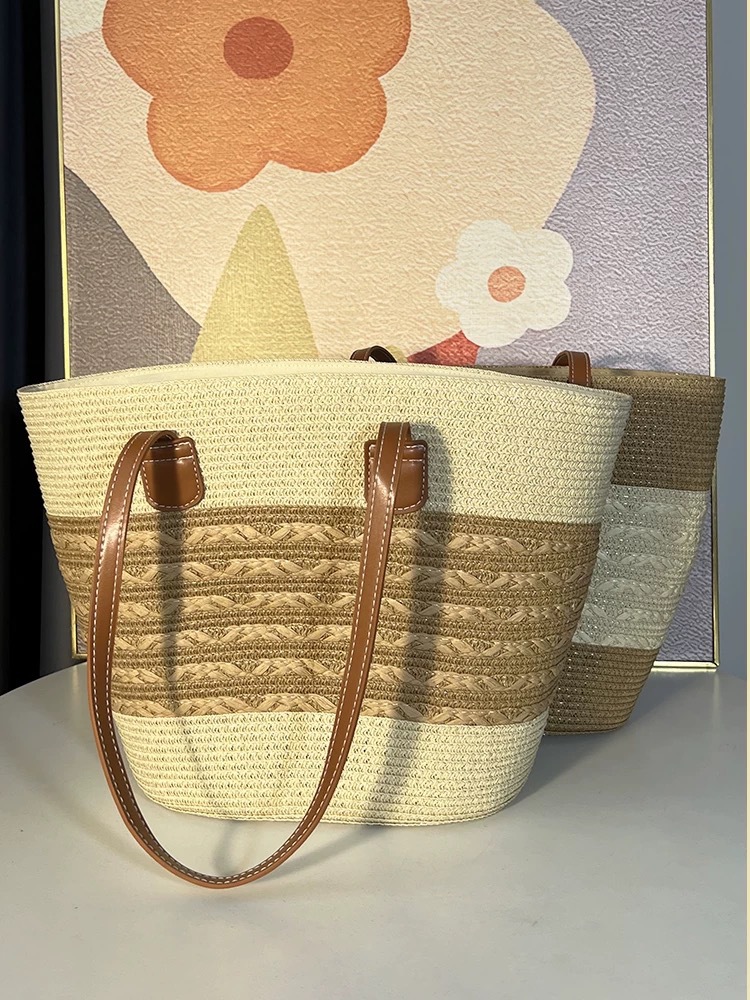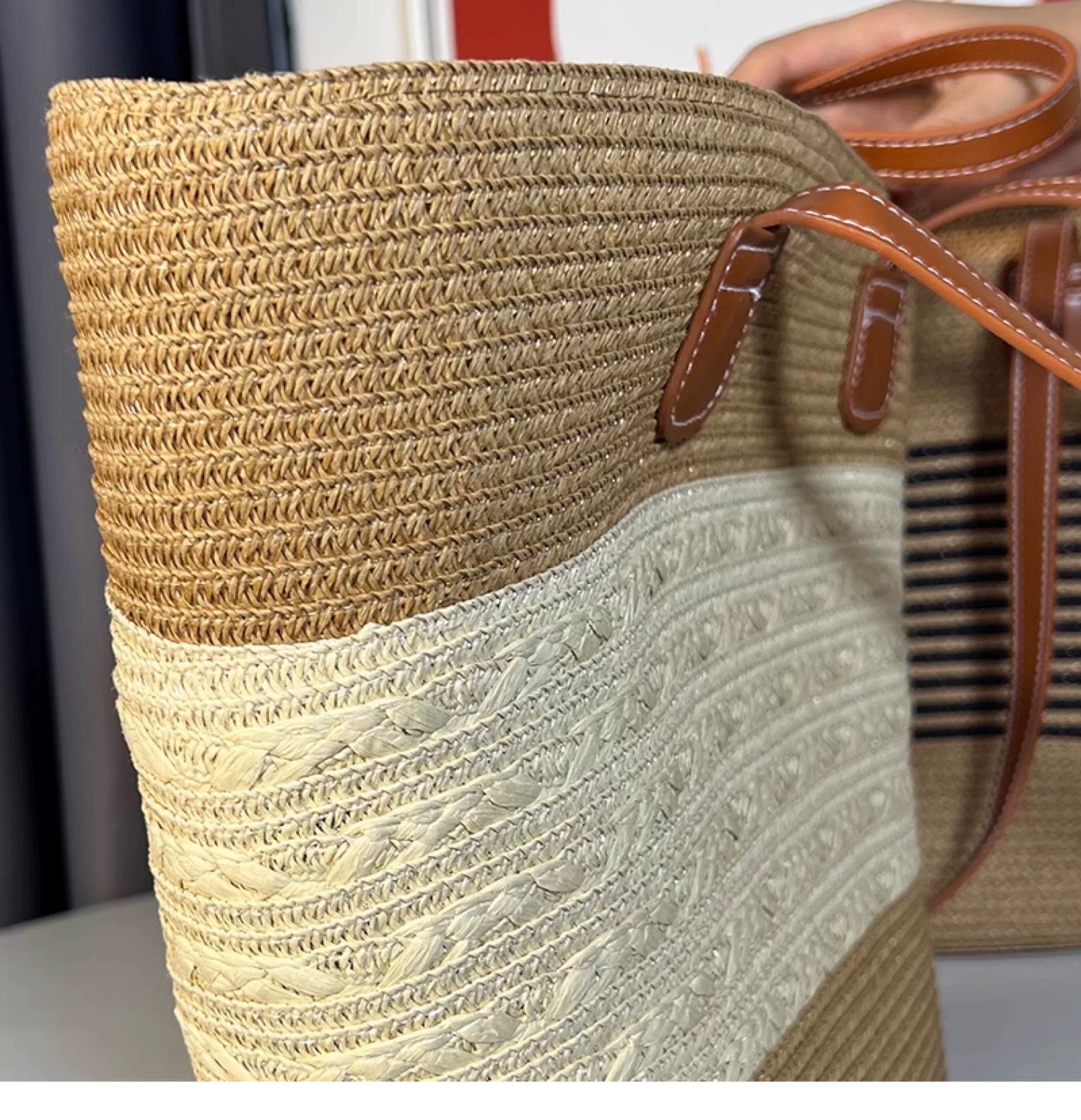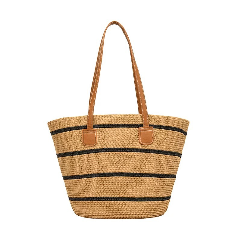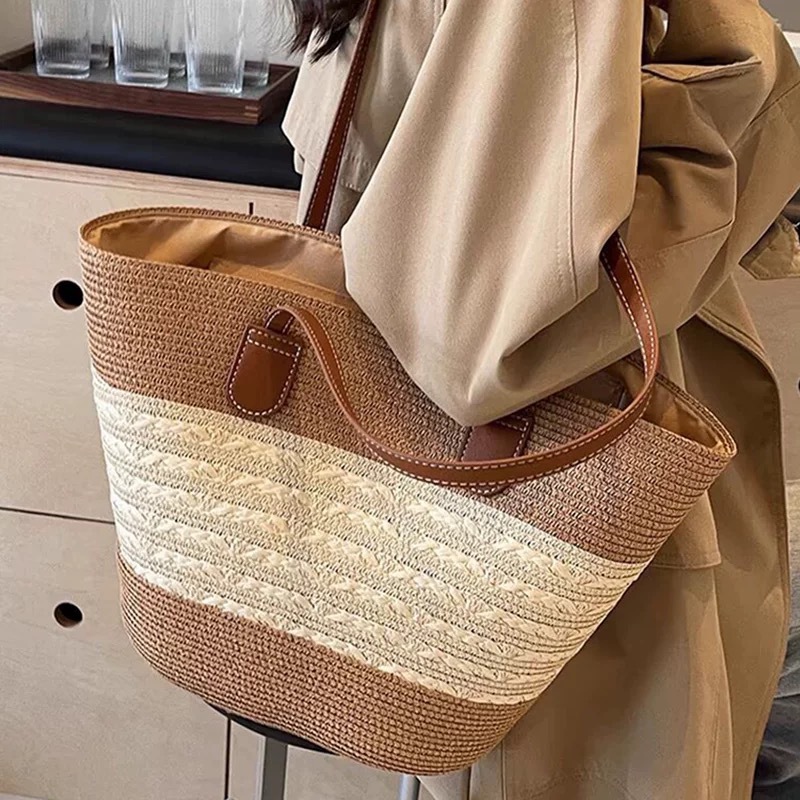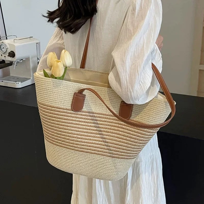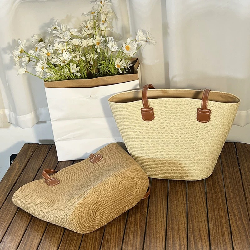 2025 새로운 해변 짠 가방 비치 밀짚 짠 가방 단일 어깨 프랑스 목회 휴가 대용량 여성 여름