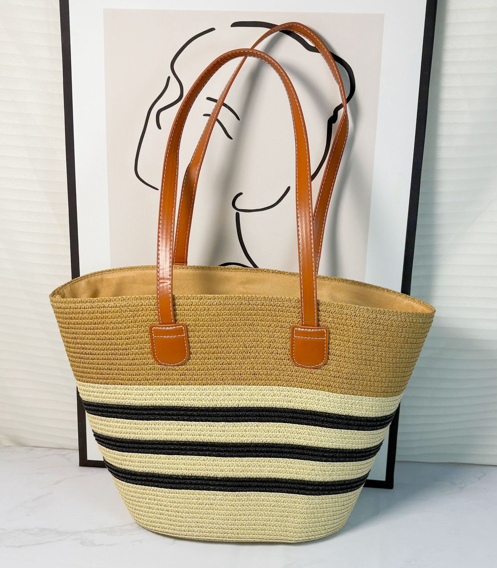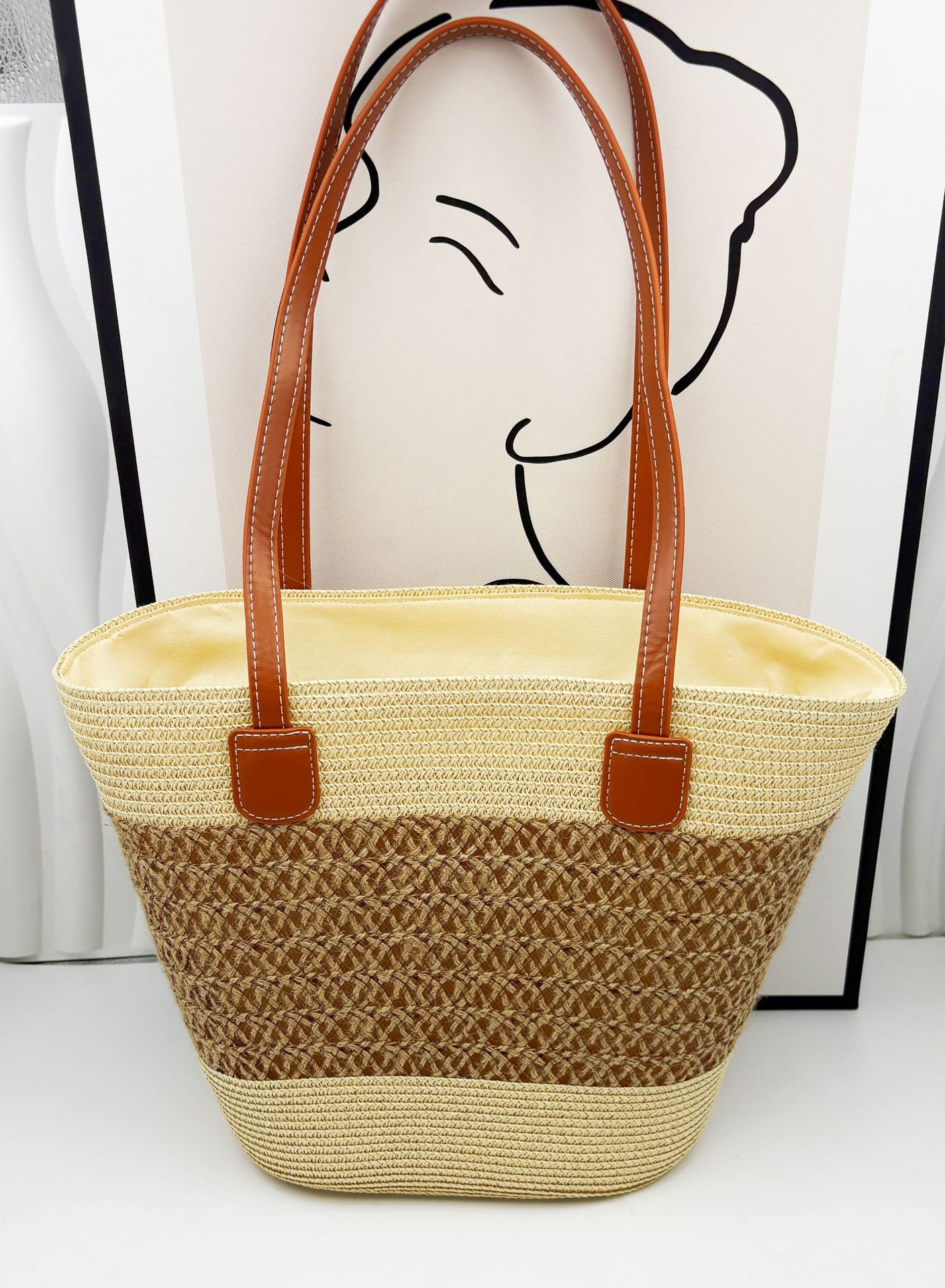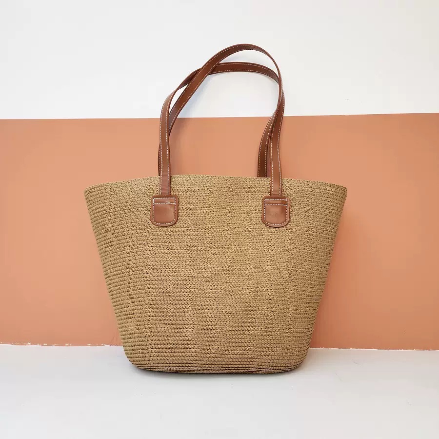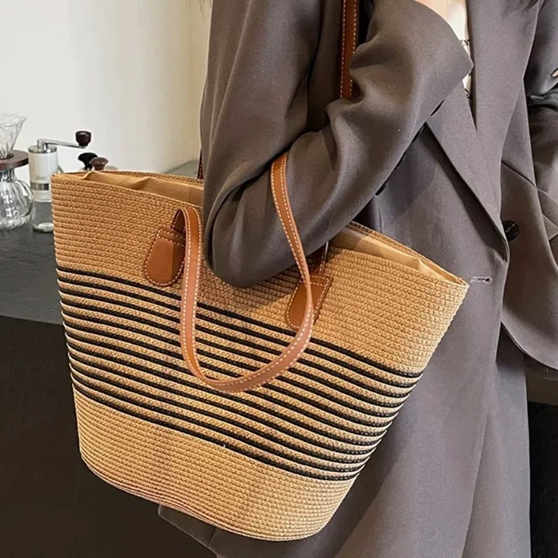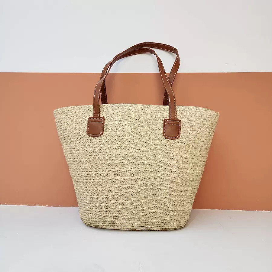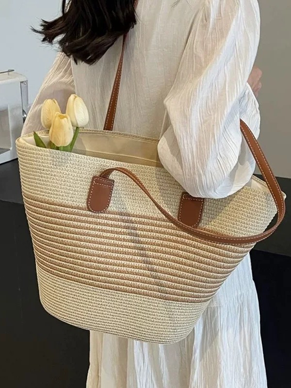 2025 새로운 해변 짠 가방 비치 밀짚 짠 가방 단일 어깨 프랑스 목회 휴가 대용량 여성 여름