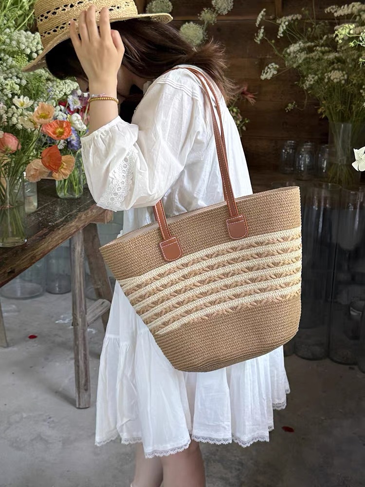 2025 새로운 해변 짠 가방 비치 밀짚 짠 가방 단일 어깨 프랑스 목회 휴가 대용량 여성 여름스토어 가기