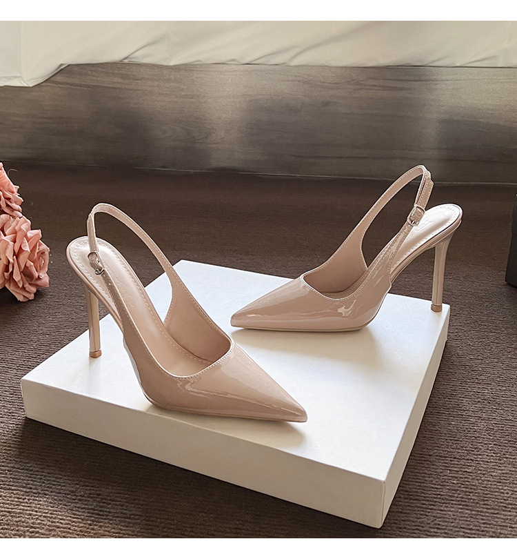 2025 년 여름 새로운 도착 스틸레토 포인팅 후면 빈 올 매치 누드 특허 가죽 하이힐 유행 한국식 하이 엔드 샌들