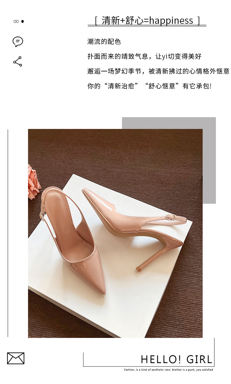 2025 년 여름 새로운 도착 스틸레토 포인팅 후면 빈 올 매치 누드 특허 가죽 하이힐 유행 한국식 하이 엔드 샌들스토어 가기