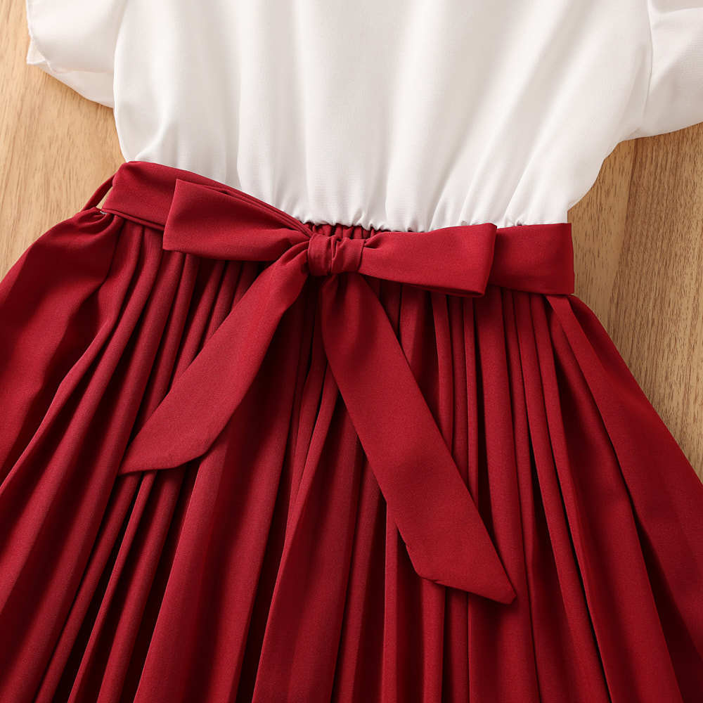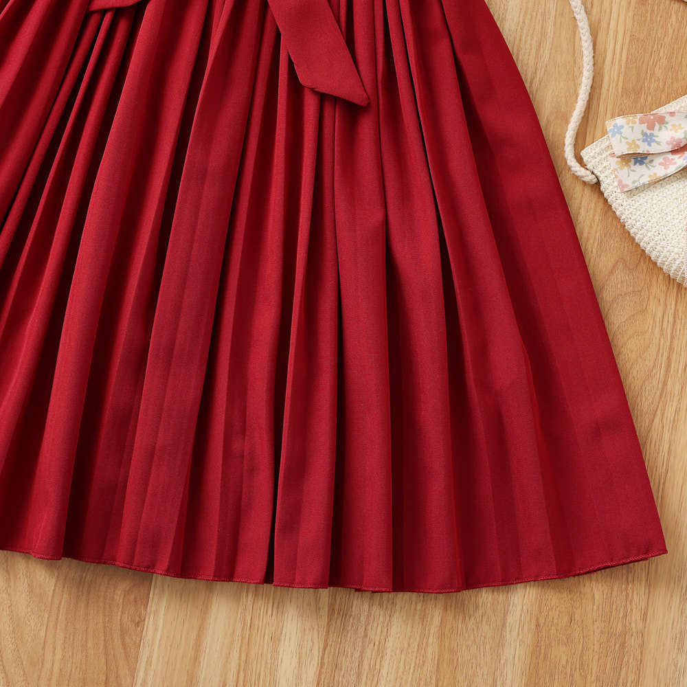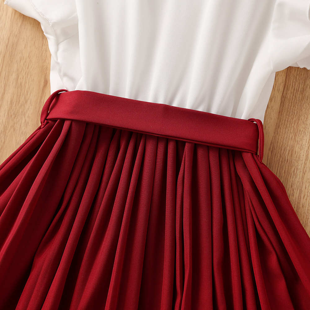 소녀 원피스 국경 폭발 어린이 착용 2025 여름 새로운 스타일 서양식 비행 소매 색상 일치 우아한 주름 치마