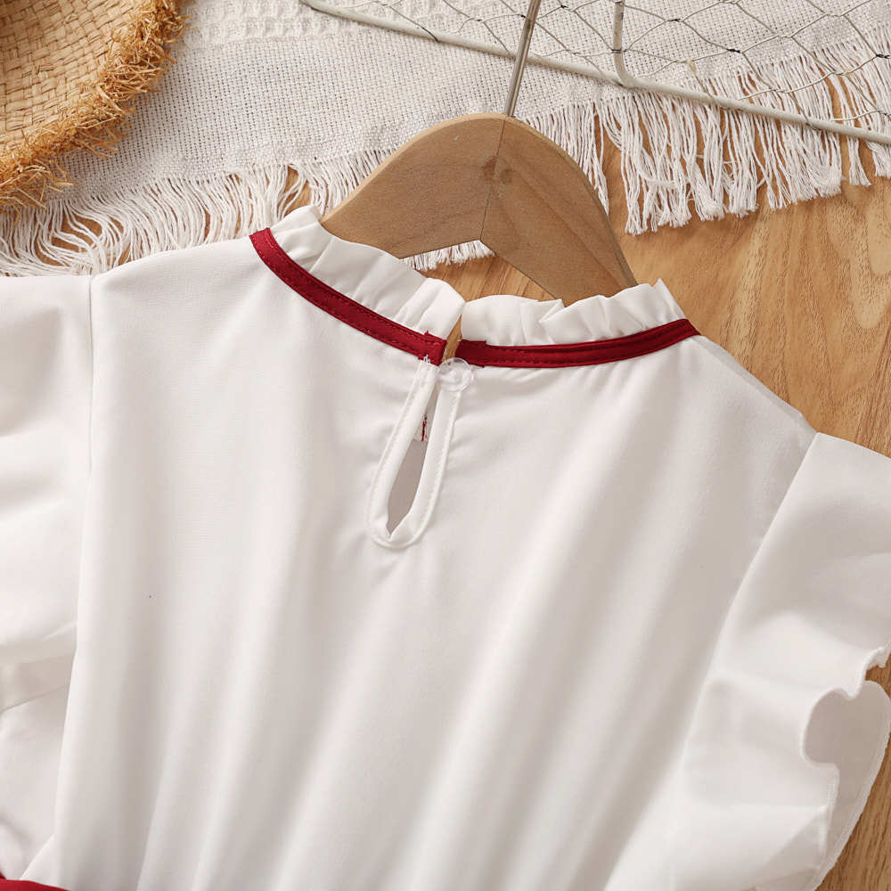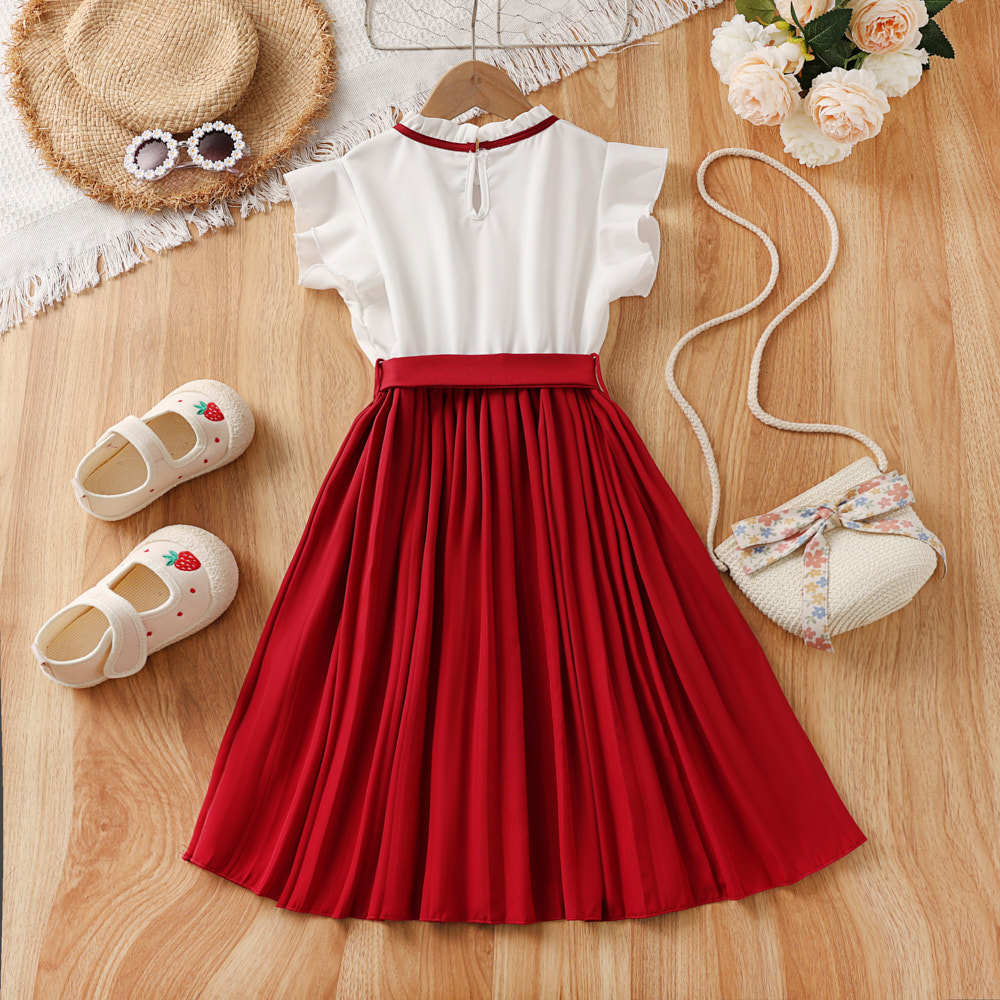 소녀 원피스 국경 폭발 어린이 착용 2025 여름 새로운 스타일 서양식 비행 소매 색상 일치 우아한 주름 치마스토어 가기