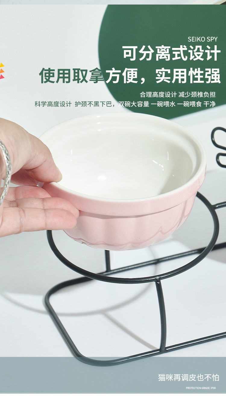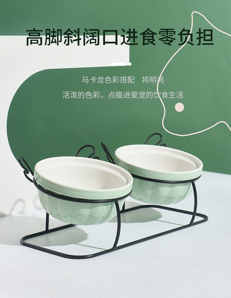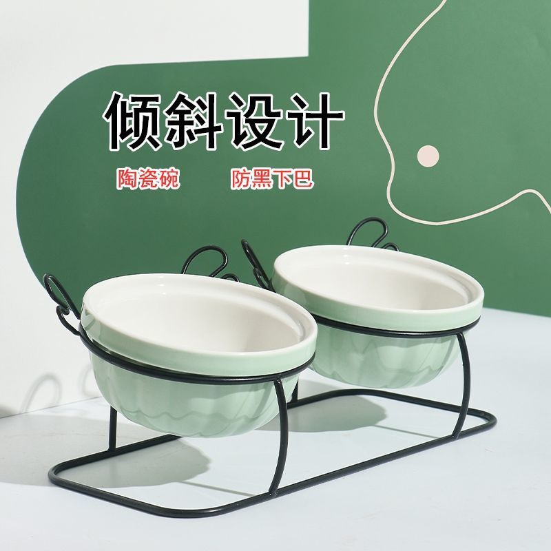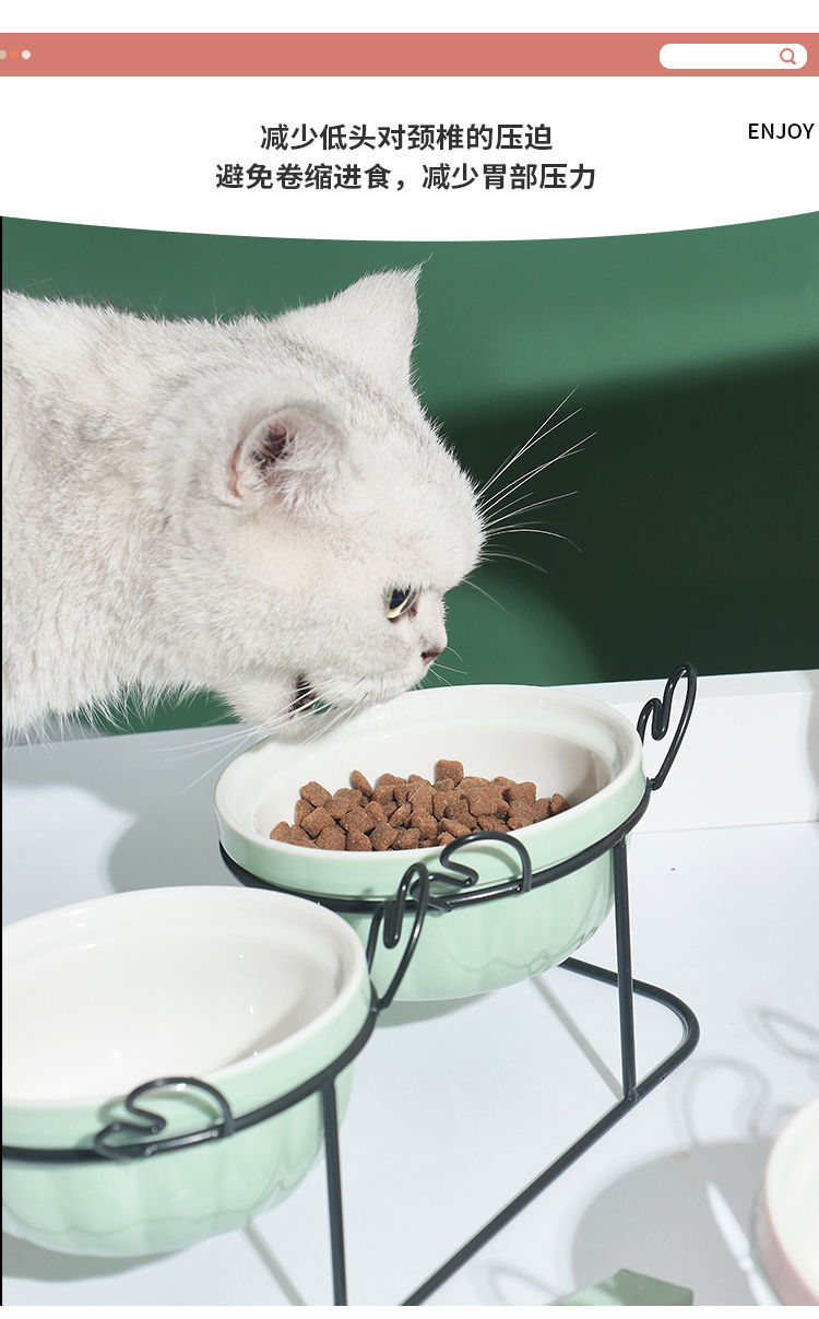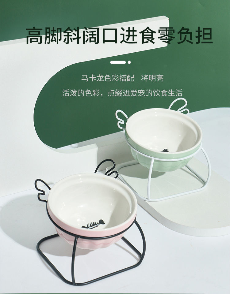 고양이 그릇 세라믹 더블 그릇 귀여운 경사진 입과 높은 발 고양이 그릇은 고양이 사료 그릇을 보호합니다 고정형 고양이 사료 그릇을 뒤집는 것을 방지합니다.