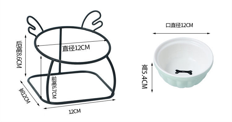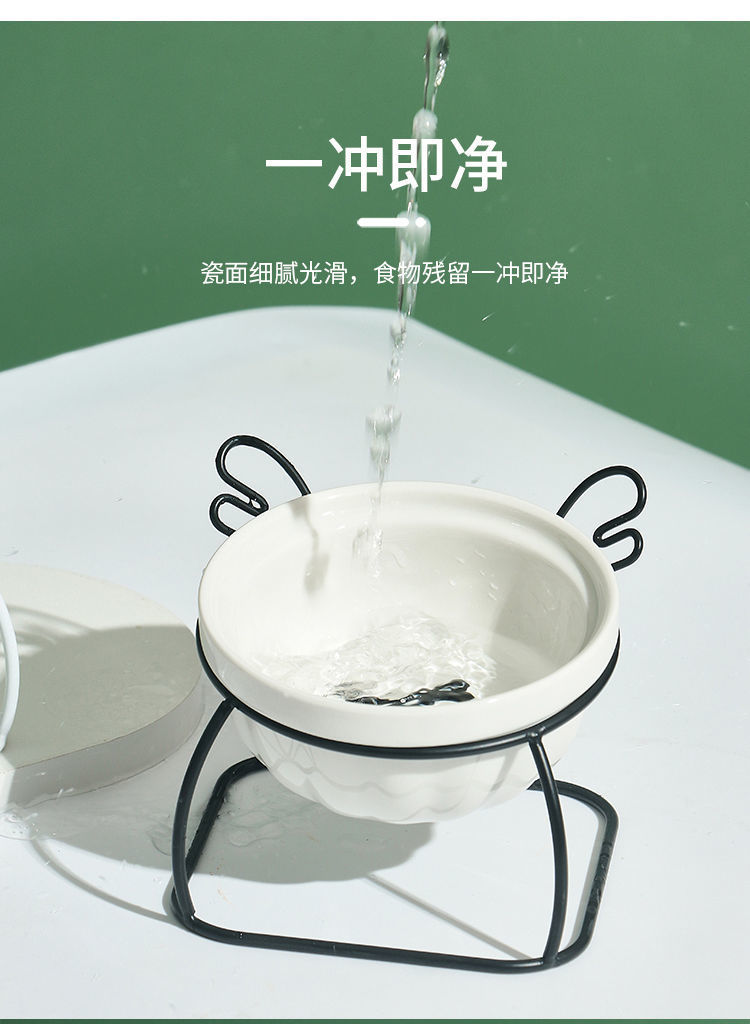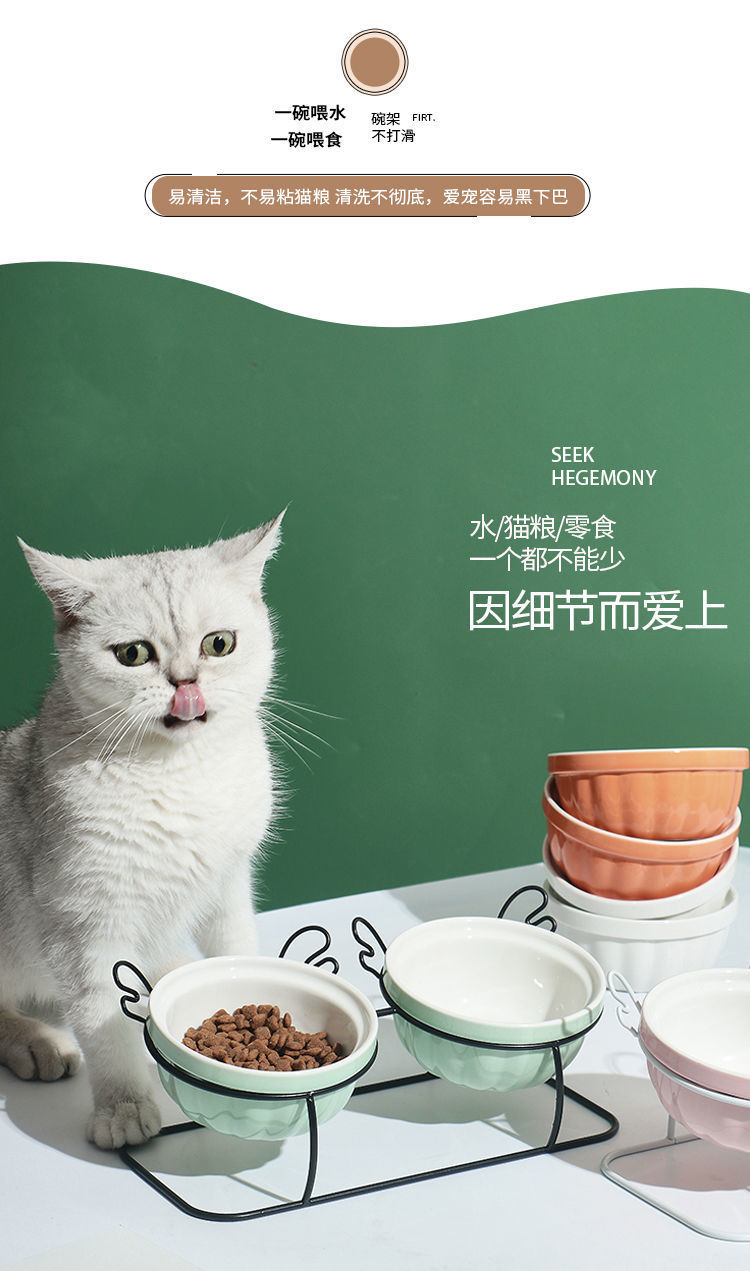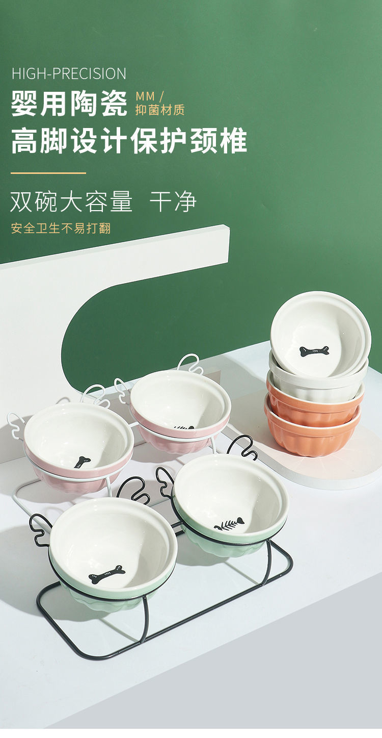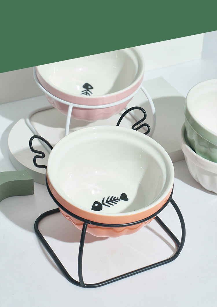 고양이 그릇 세라믹 더블 그릇 귀여운 경사진 입과 높은 발 고양이 그릇은 고양이 사료 그릇을 보호합니다 고정형 고양이 사료 그릇을 뒤집는 것을 방지합니다.