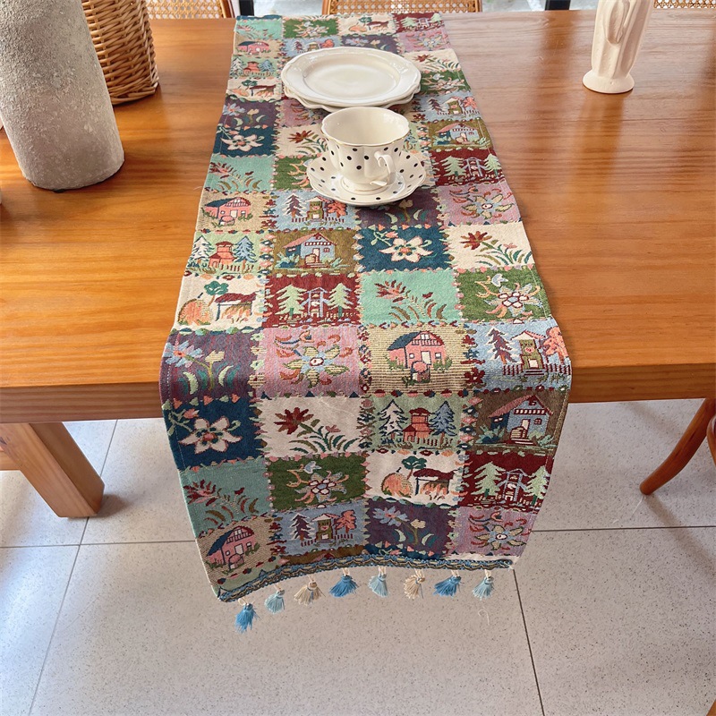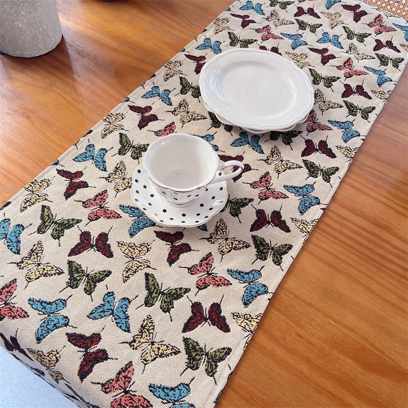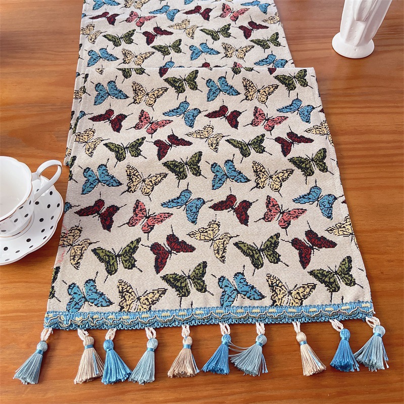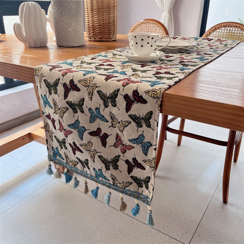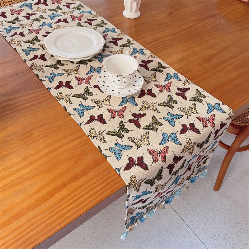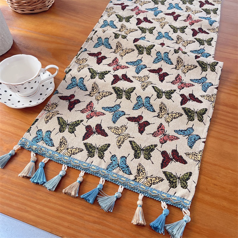 2025 국경 간 미국 레트로 스타일 나비 테이블 러너 코튼 및 리넨 하이 엔드 티 테이블 버킷 캐비닛 천 목회 긴 테이블 스카프스토어 가기