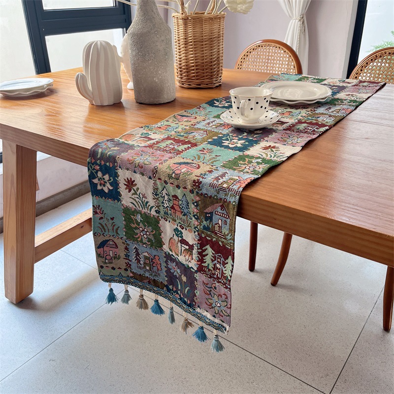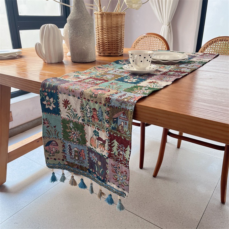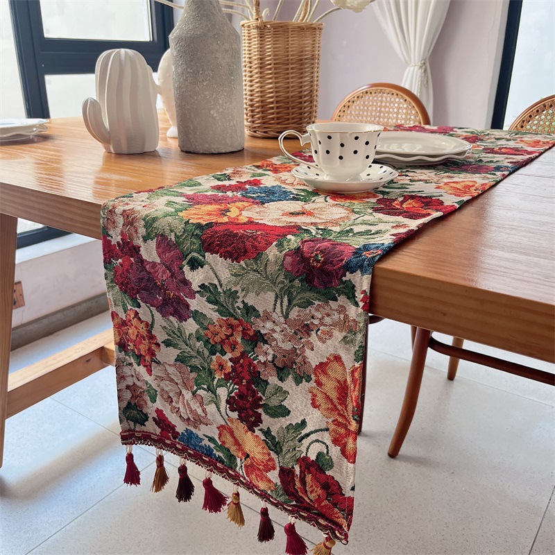 2025 국경 간 미국 레트로 스타일 나비 테이블 러너 코튼 및 리넨 하이 엔드 티 테이블 버킷 캐비닛 천 목회 긴 테이블 스카프