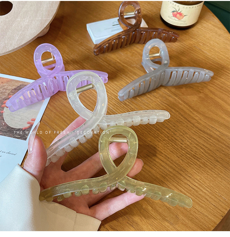 머리 볼륨이 많은 대형 젤리 컬러 머리핀, 두개골 뒤쪽 샤크핀, 한국판 ins 인터넷 연예인 기질 여성용 새 머리핀