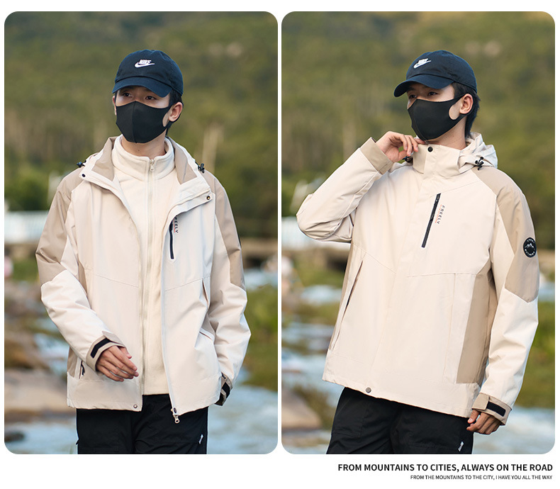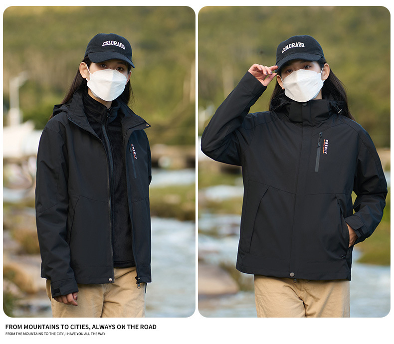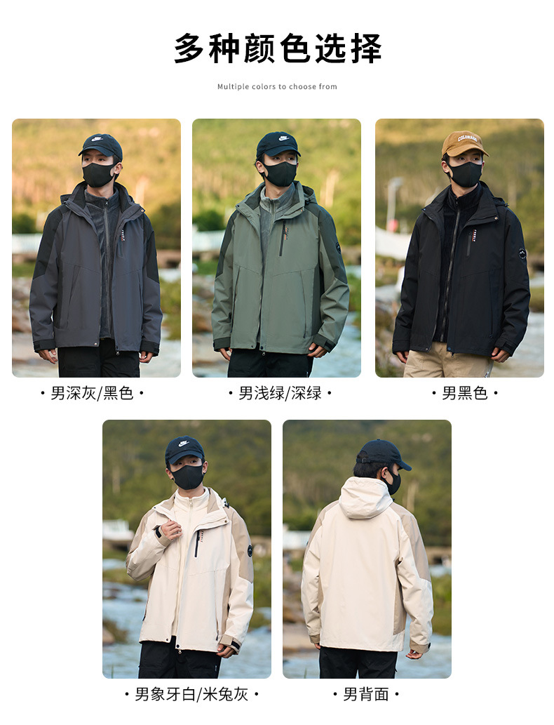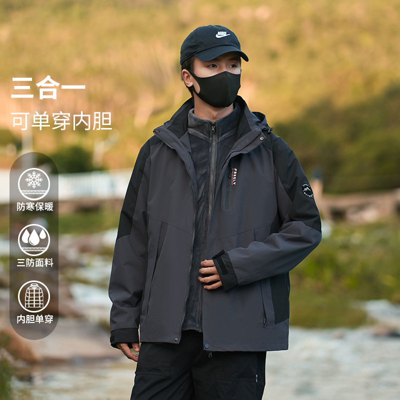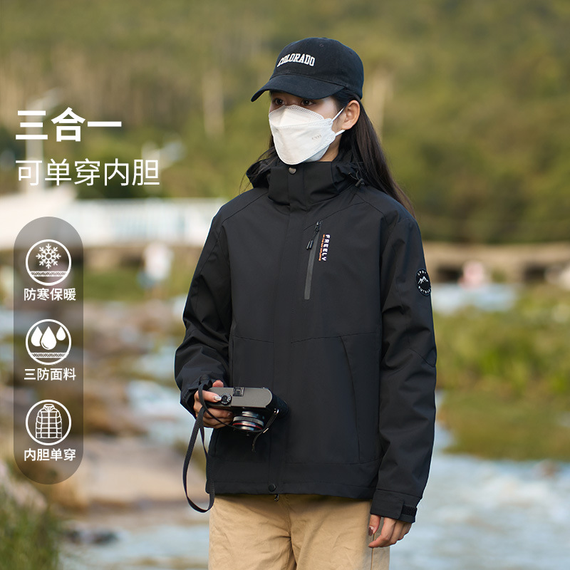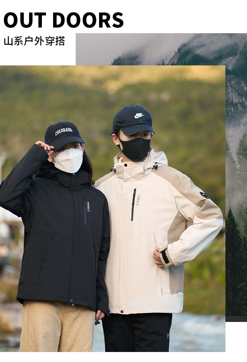 2024 커플용 단색 등산복 스포츠 재킷 남성용 탈부착 가능한 내피 3-in-1 재킷 남녀공용 후드스토어 가기