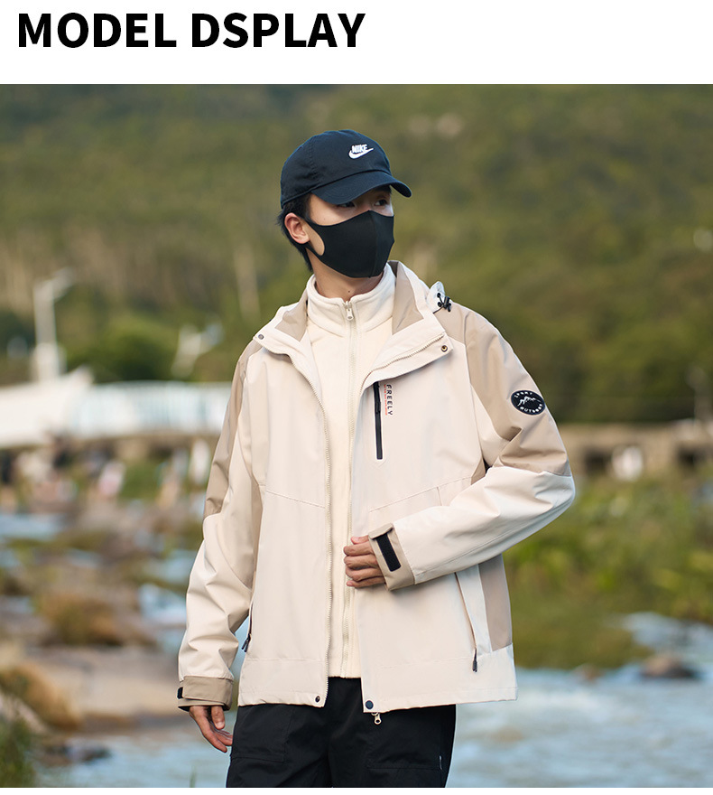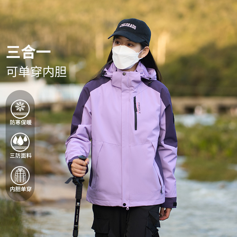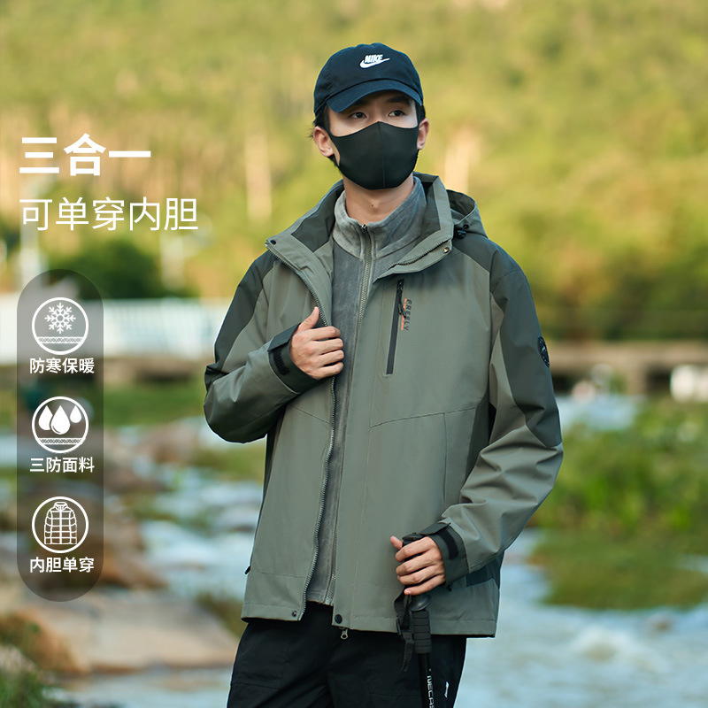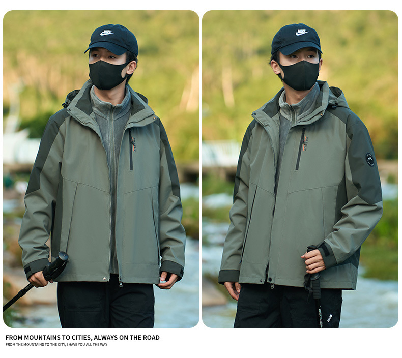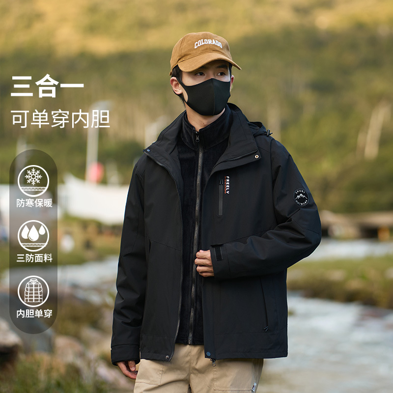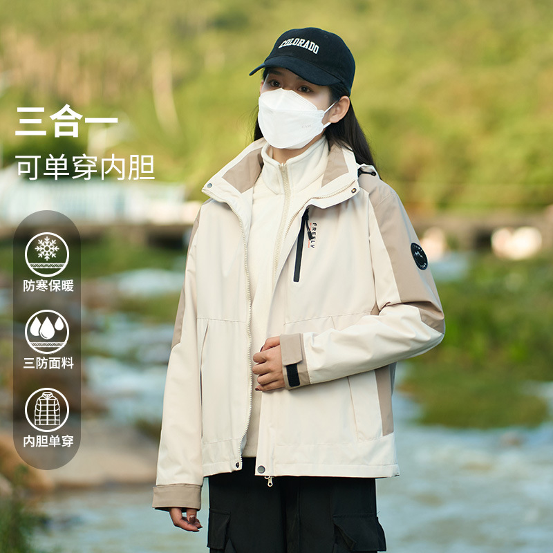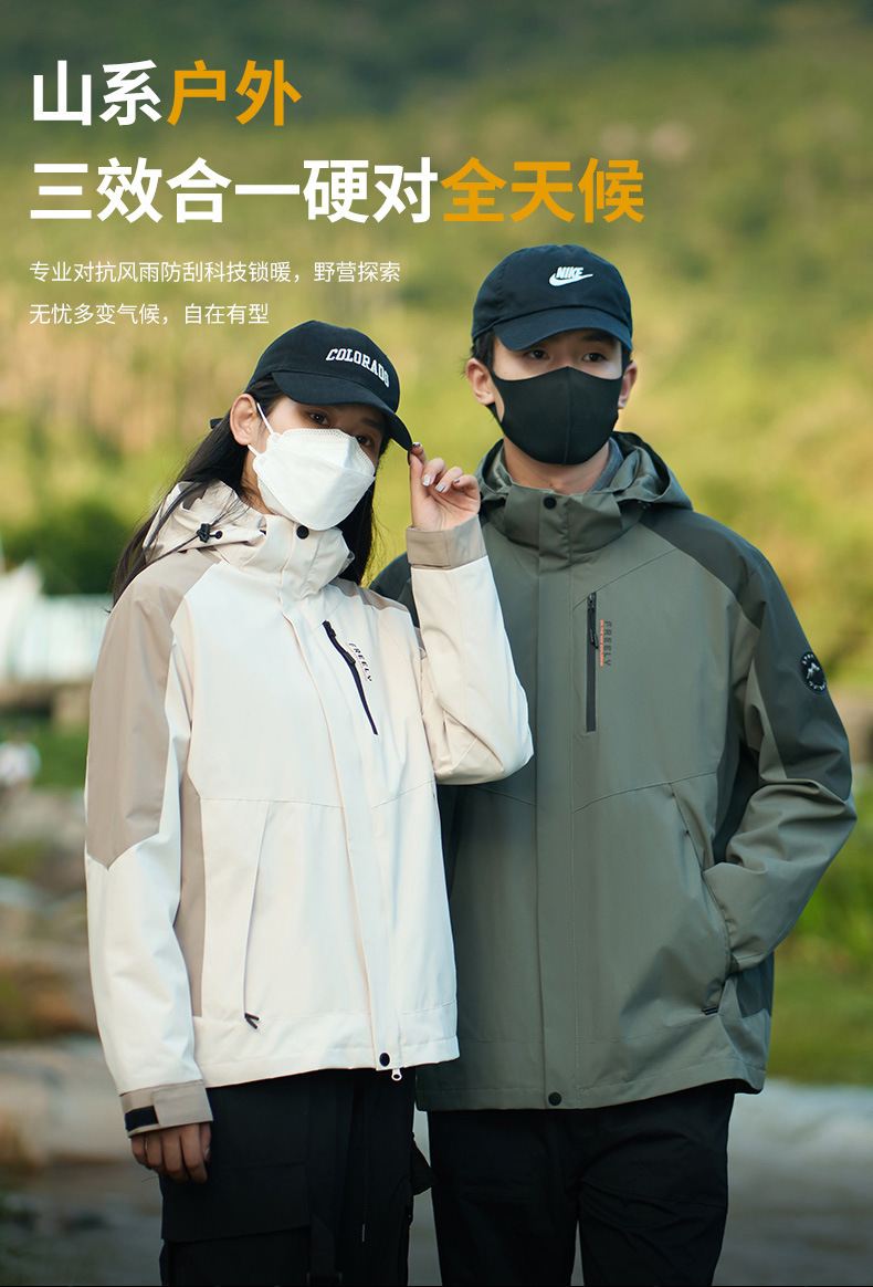 2024 커플용 단색 등산복 스포츠 재킷 남성용 탈부착 가능한 내피 3-in-1 재킷 남녀공용 후드스토어 가기