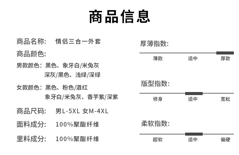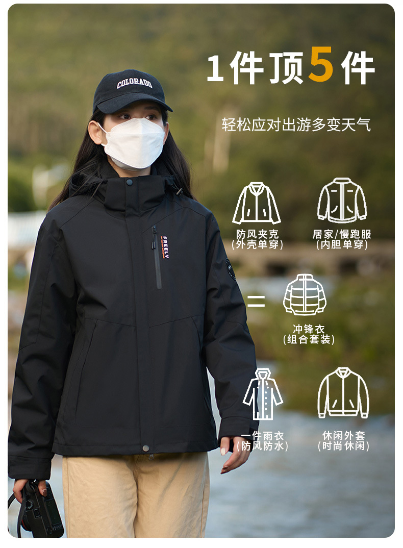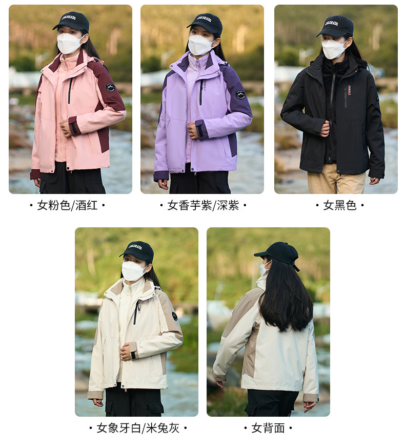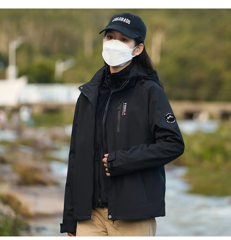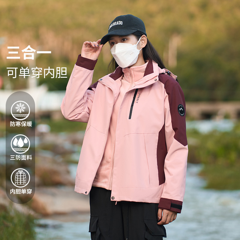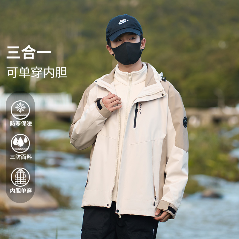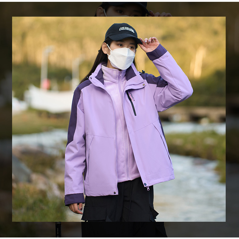 2024 커플용 단색 등산복 스포츠 재킷 남성용 탈부착 가능한 내피 3-in-1 재킷 남녀공용 후드스토어 가기
