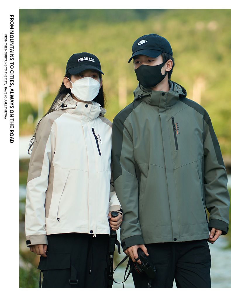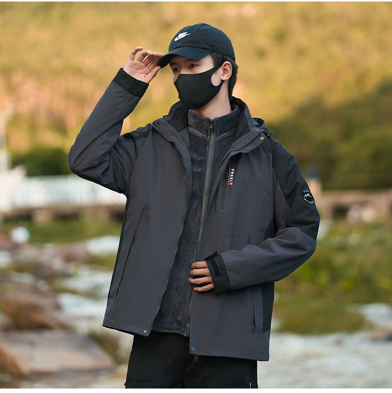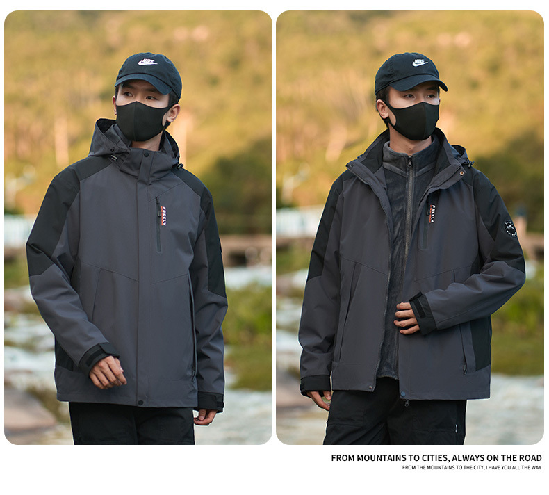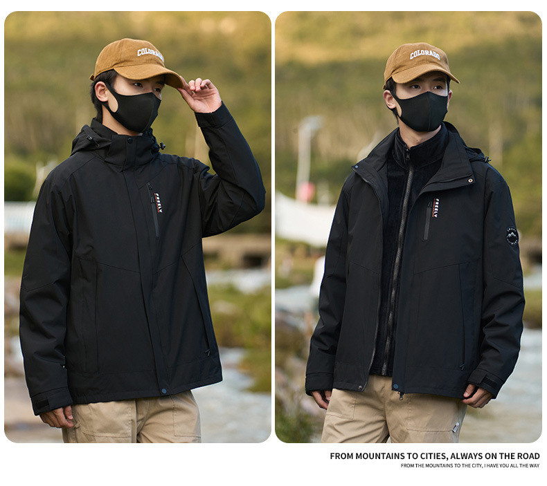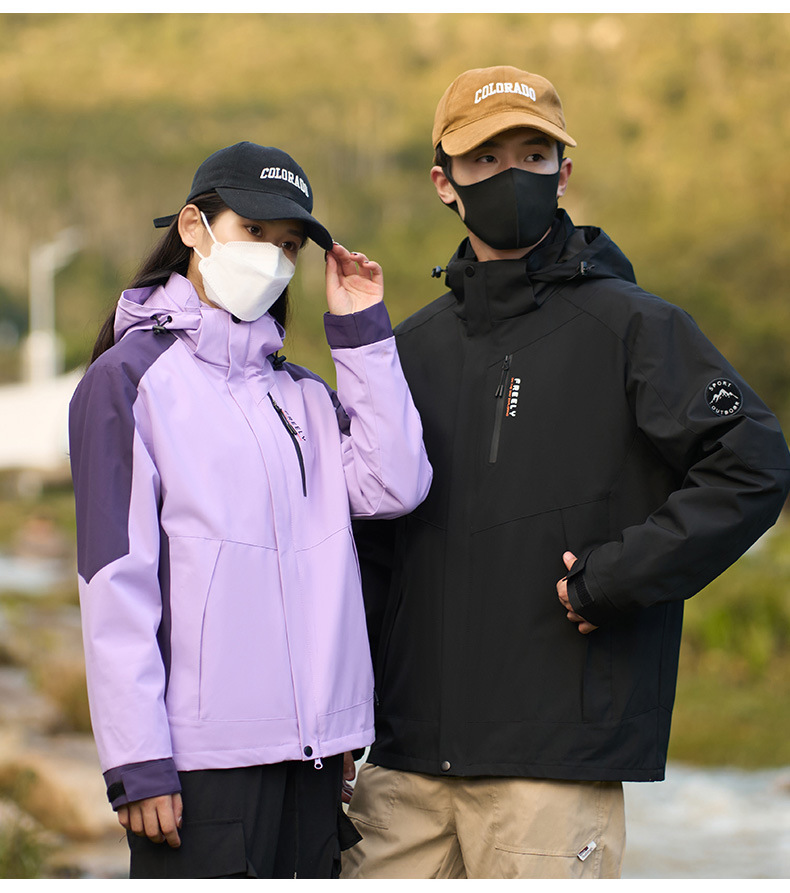 2024 커플용 단색 등산복 스포츠 재킷 남성용 탈부착 가능한 내피 3-in-1 재킷 남녀공용 후드
