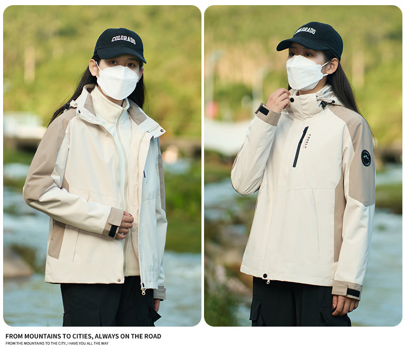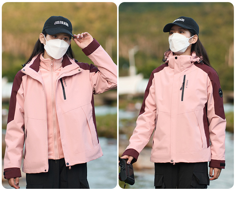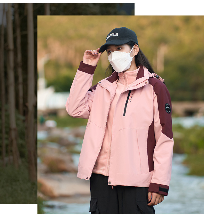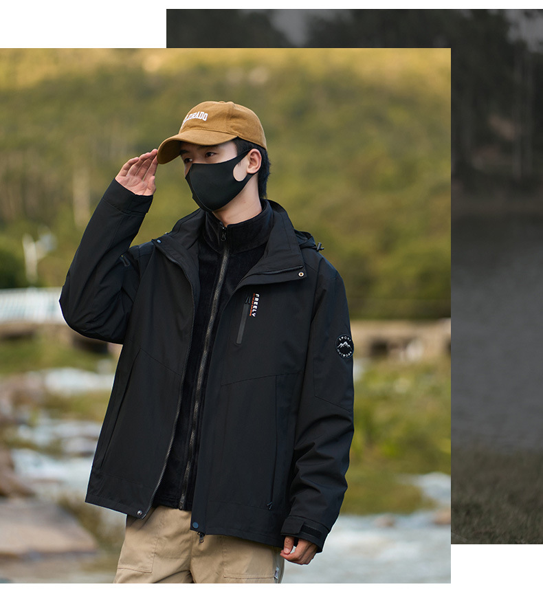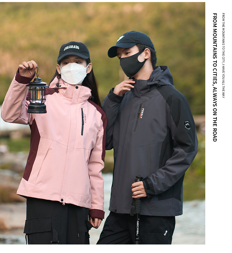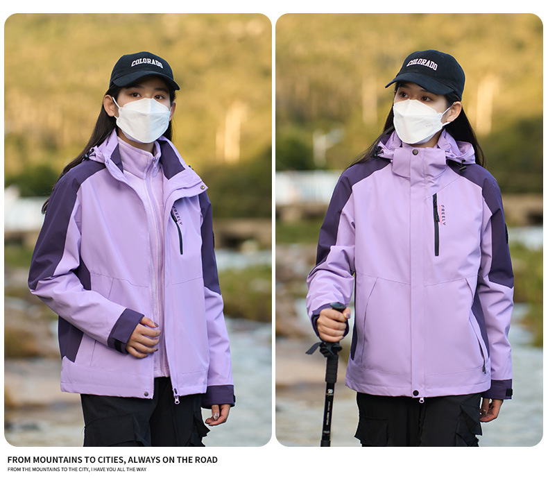 2024 커플용 단색 등산복 스포츠 재킷 남성용 탈부착 가능한 내피 3-in-1 재킷 남녀공용 후드