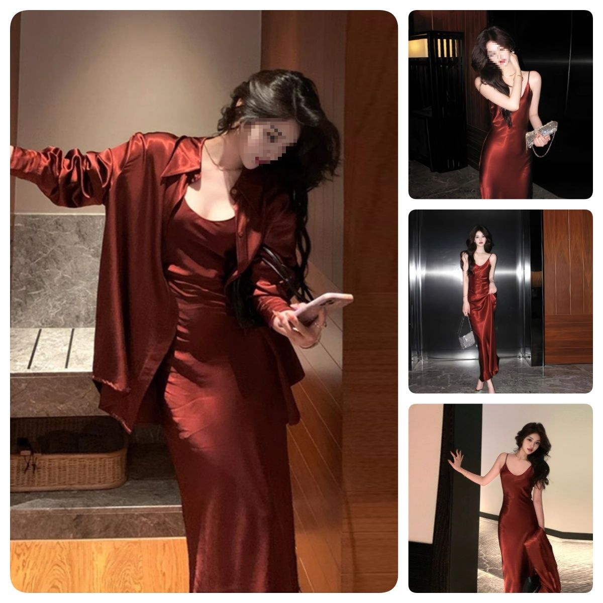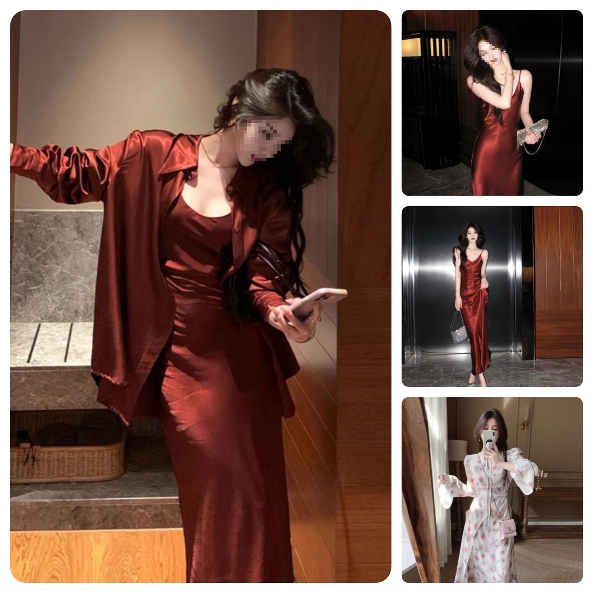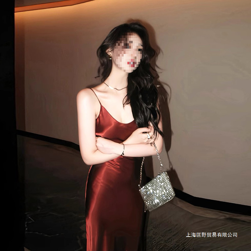 우아한 새틴 슬링 원피스 여성의 봄 2025 타이트 허리 슬리밍 스커트 원피스 Chenille Spandex스토어 가기
