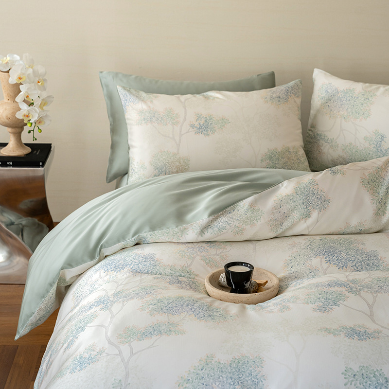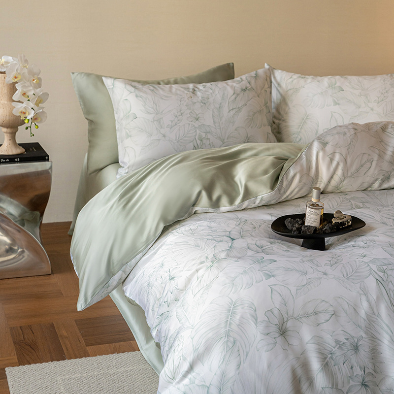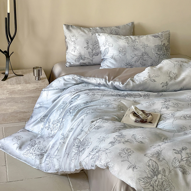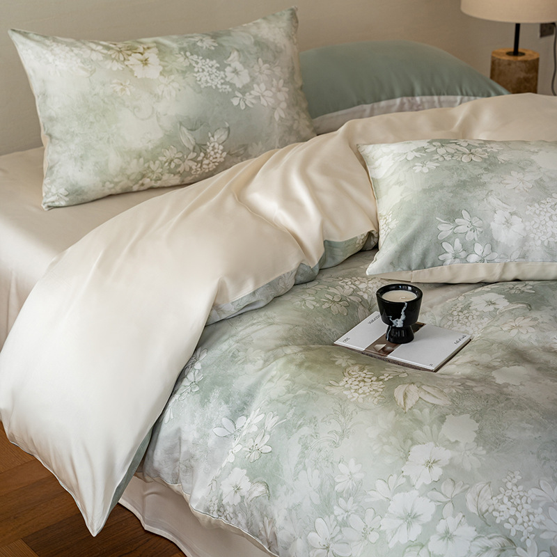 60 란징 텐셀 4 피스 세트 새로운 중국 스타일 빈티지 꽃 여름 아이스 실크 쿨 침대 커버 침구 세트스토어 가기