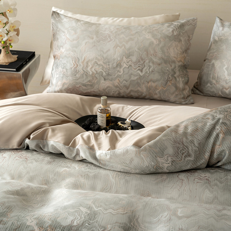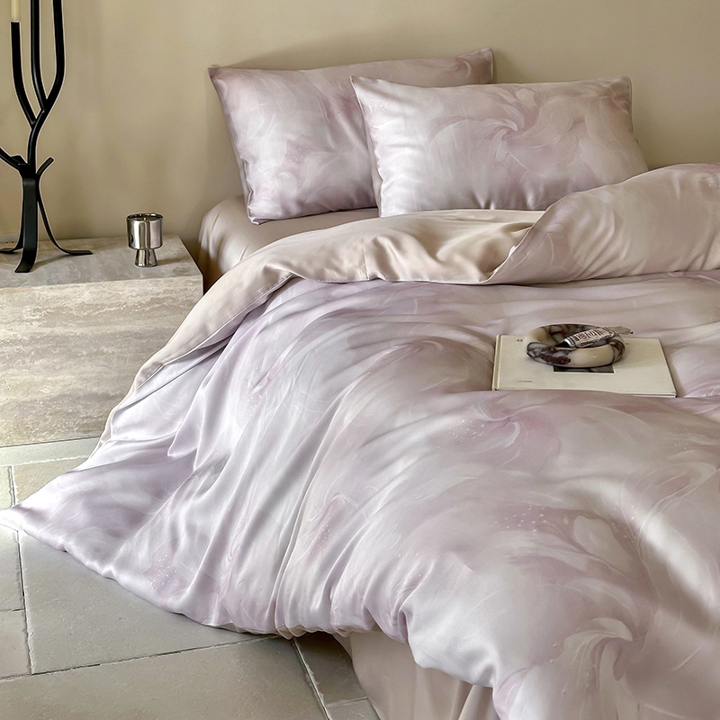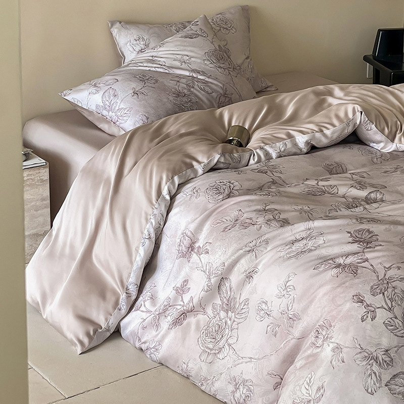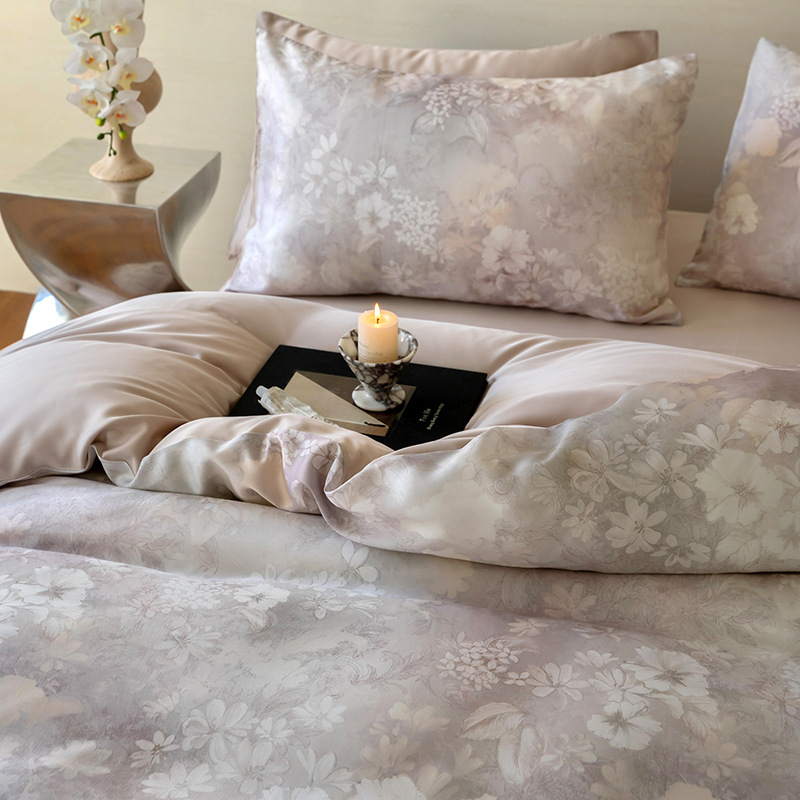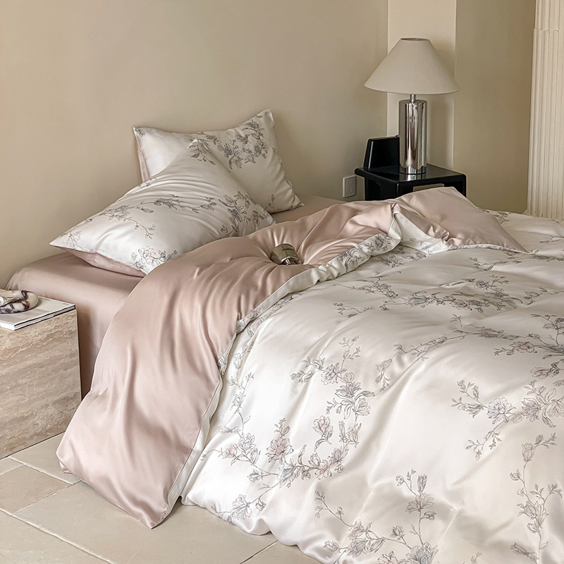 60 란징 텐셀 4 피스 세트 새로운 중국 스타일 빈티지 꽃 여름 아이스 실크 쿨 침대 커버 침구 세트