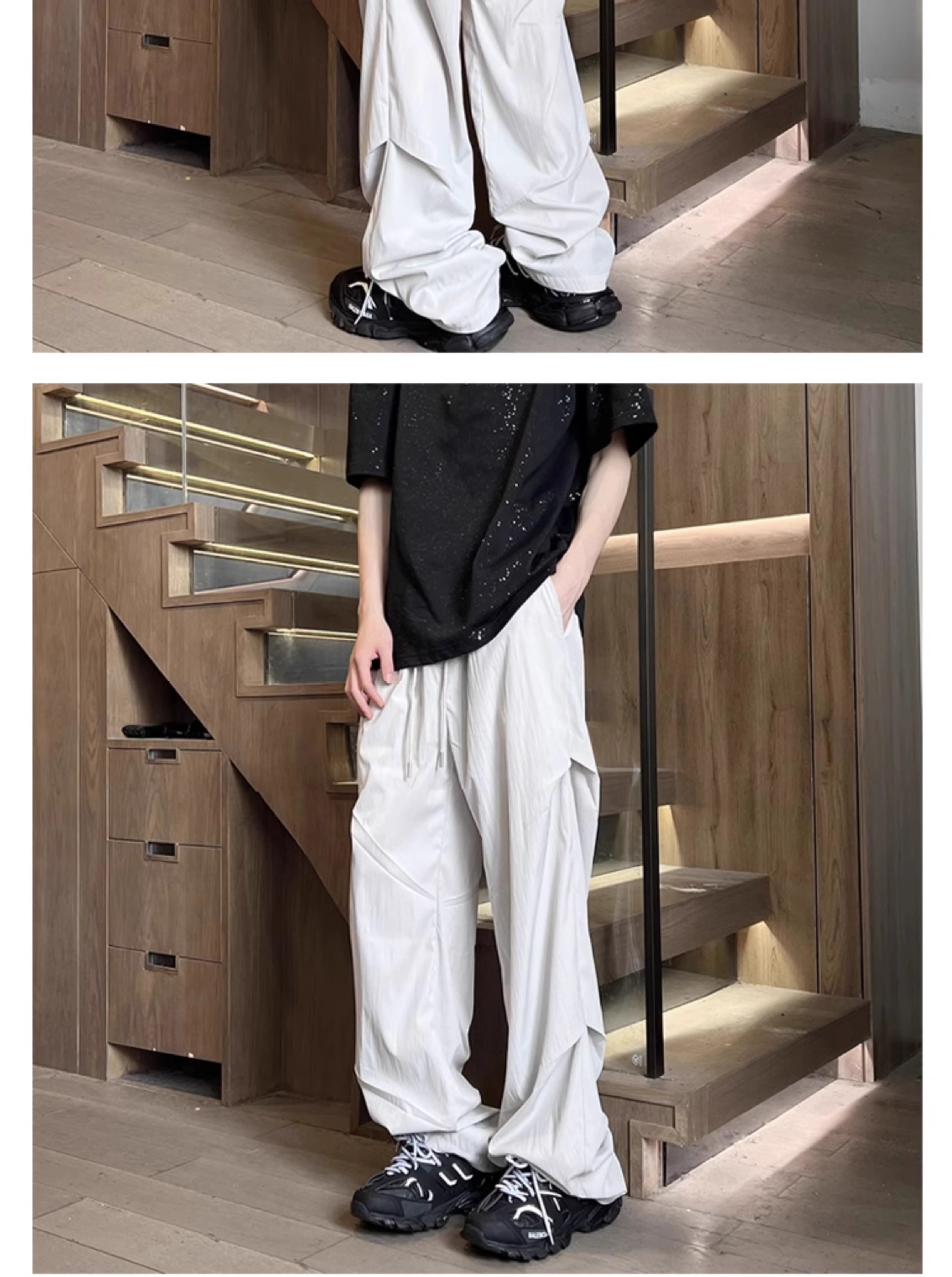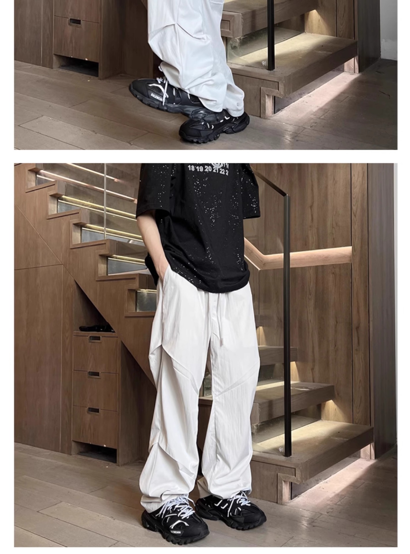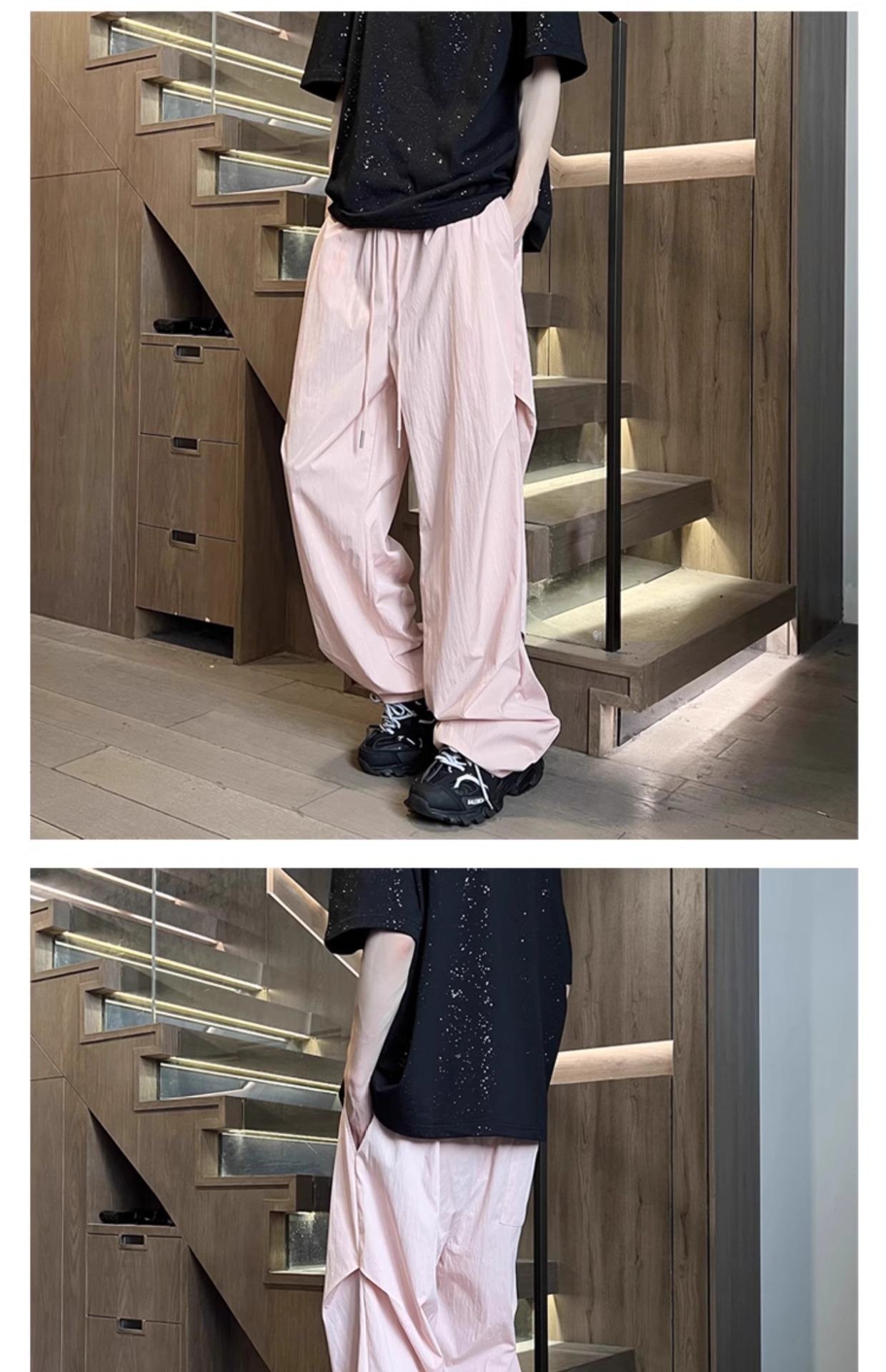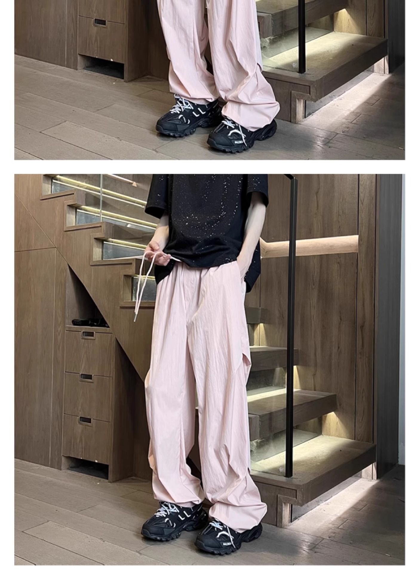NASA, 트렌디 한 브랜드 낙하산 바지 남성 여름 얇은 느슨한 다리 캐주얼 아이스 실크 크록 바지스토어 가기