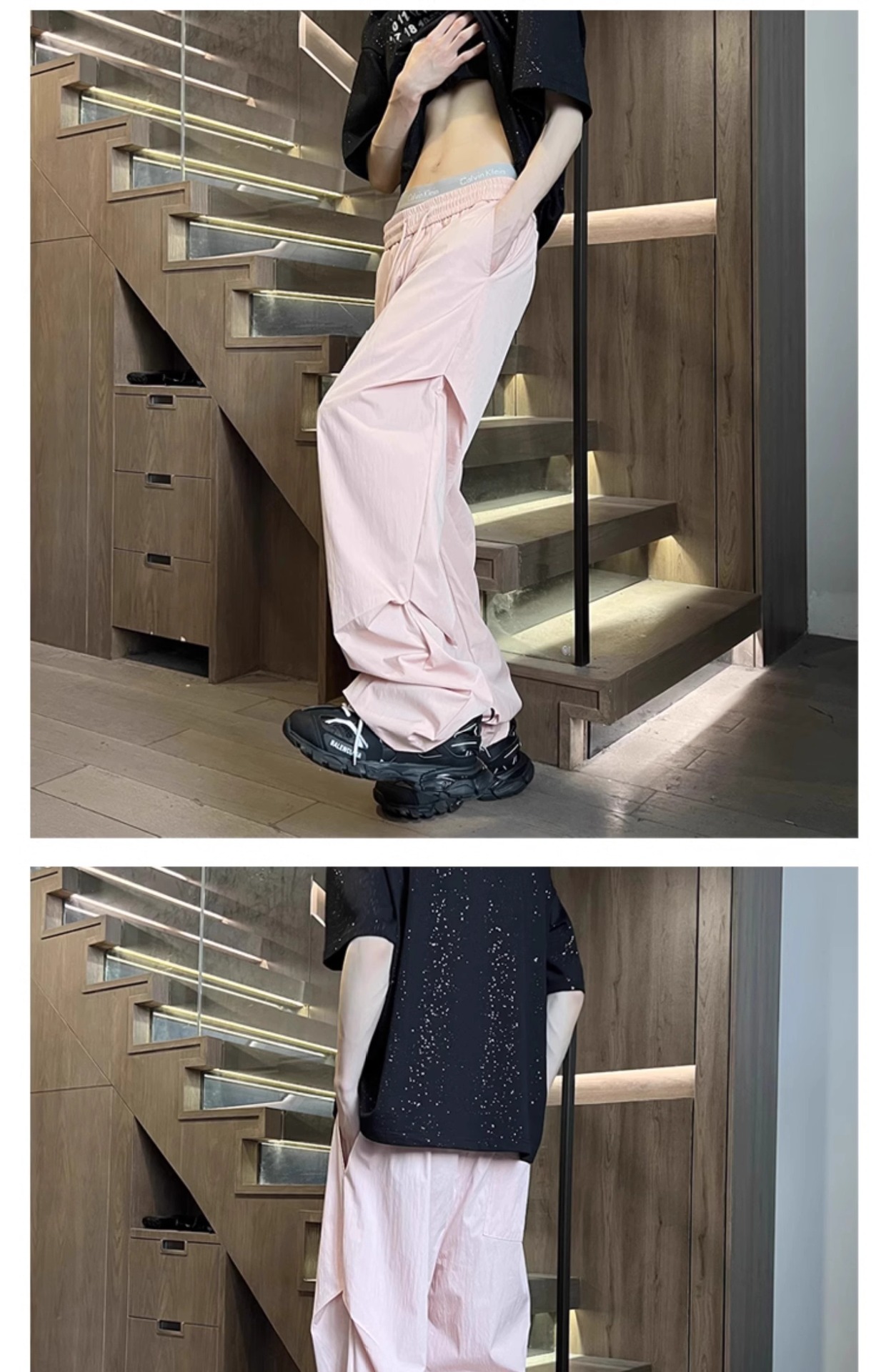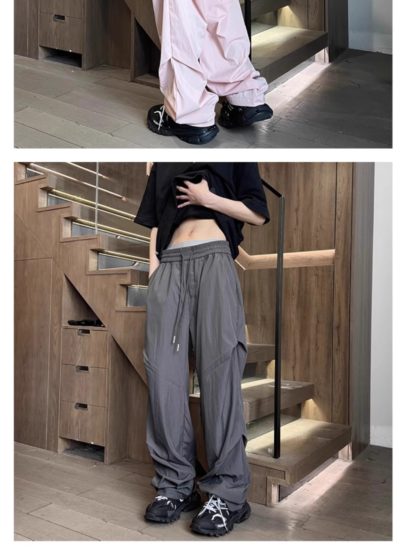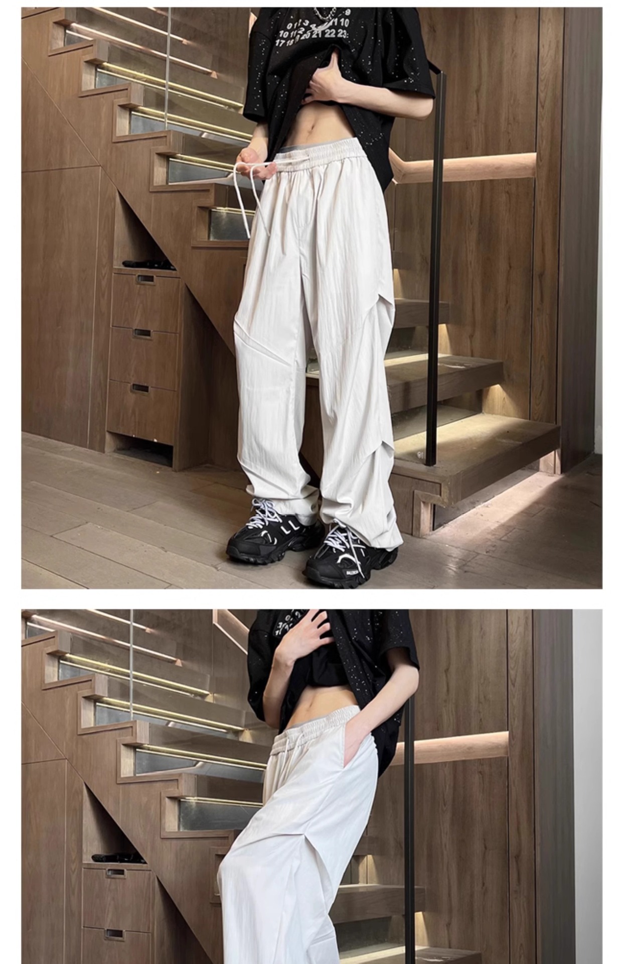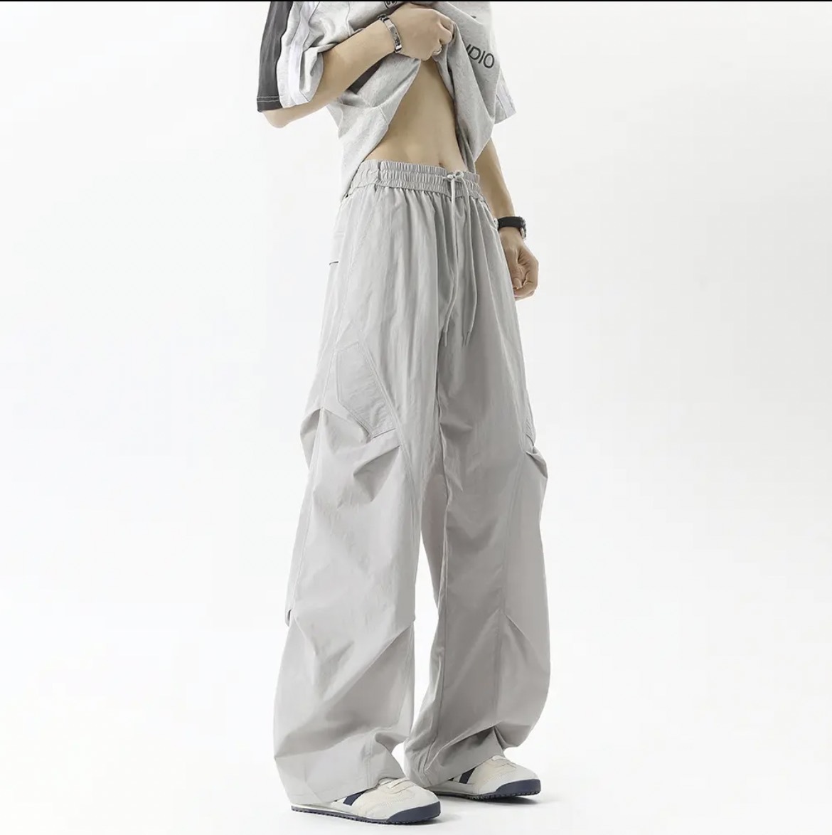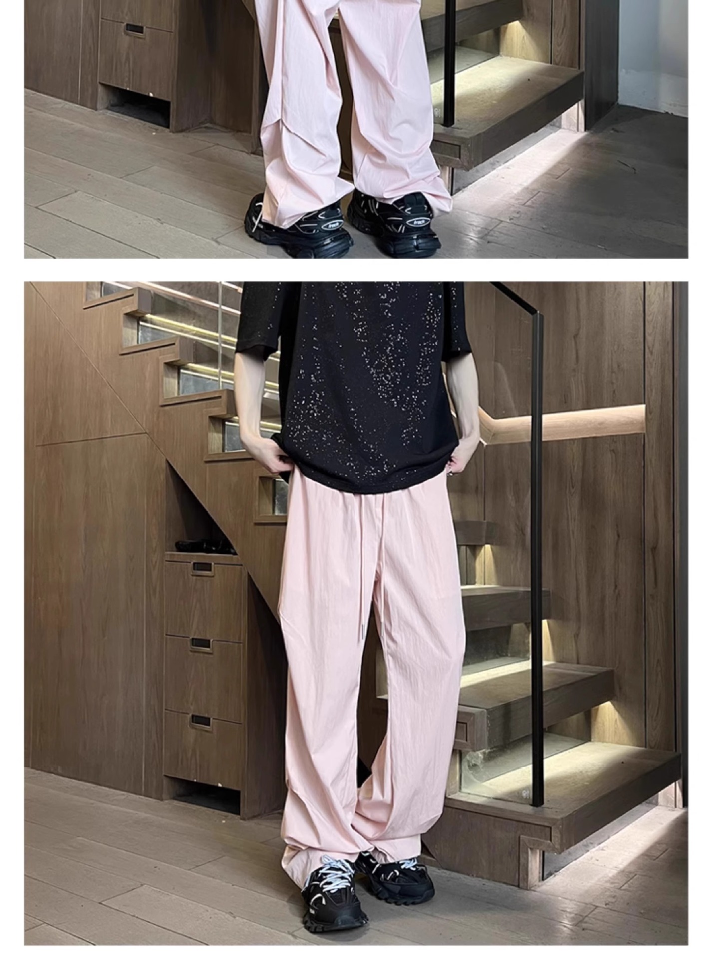 NASA, 트렌디 한 브랜드 낙하산 바지 남성 여름 얇은 느슨한 다리 캐주얼 아이스 실크 크록 바지스토어 가기