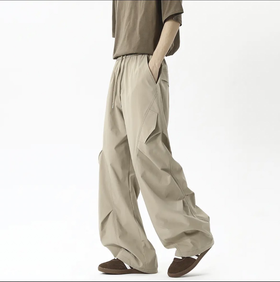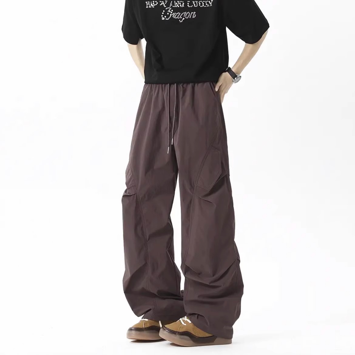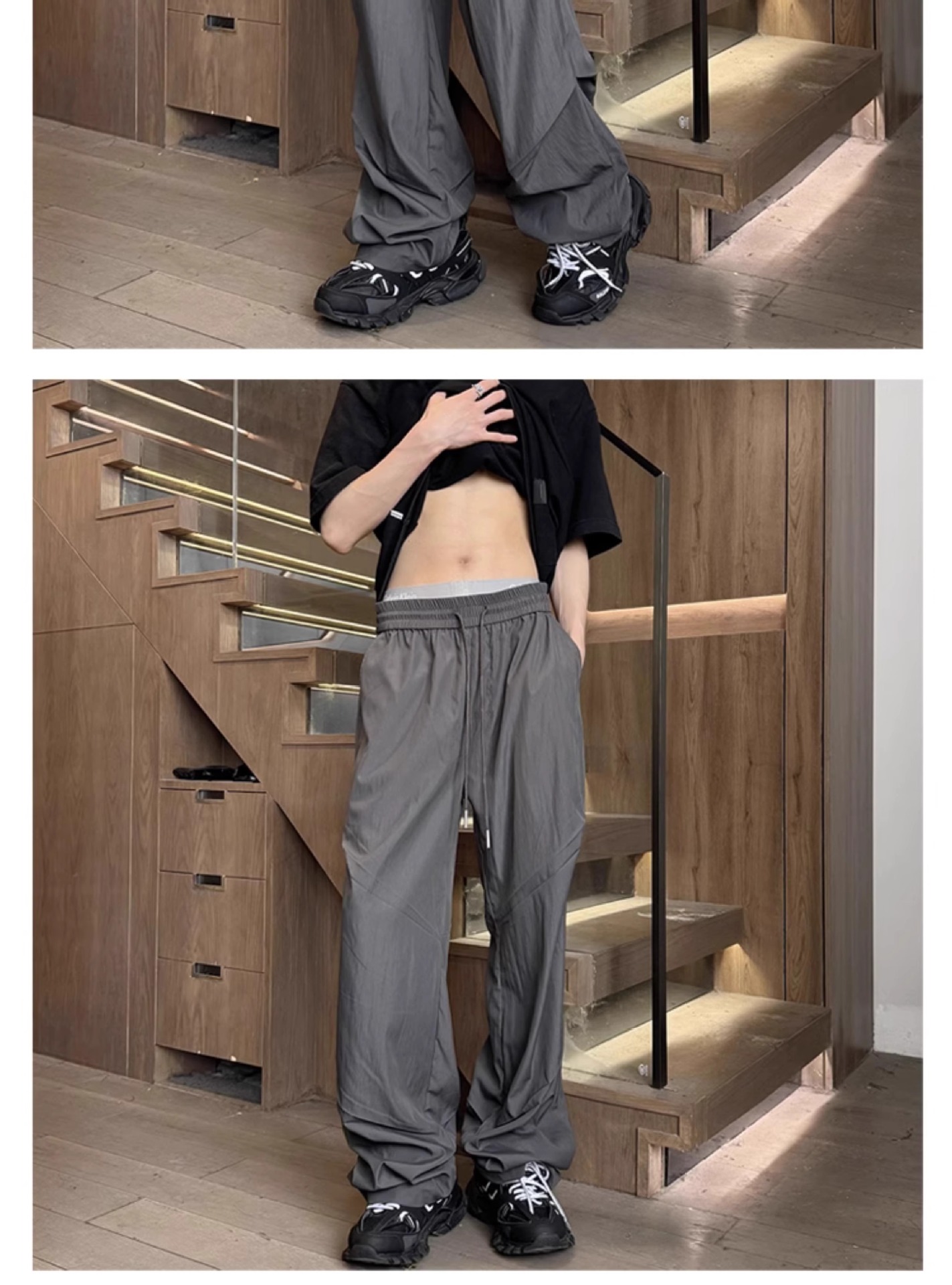 NASA, 트렌디 한 브랜드 낙하산 바지 남성 여름 얇은 느슨한 다리 캐주얼 아이스 실크 크록 바지