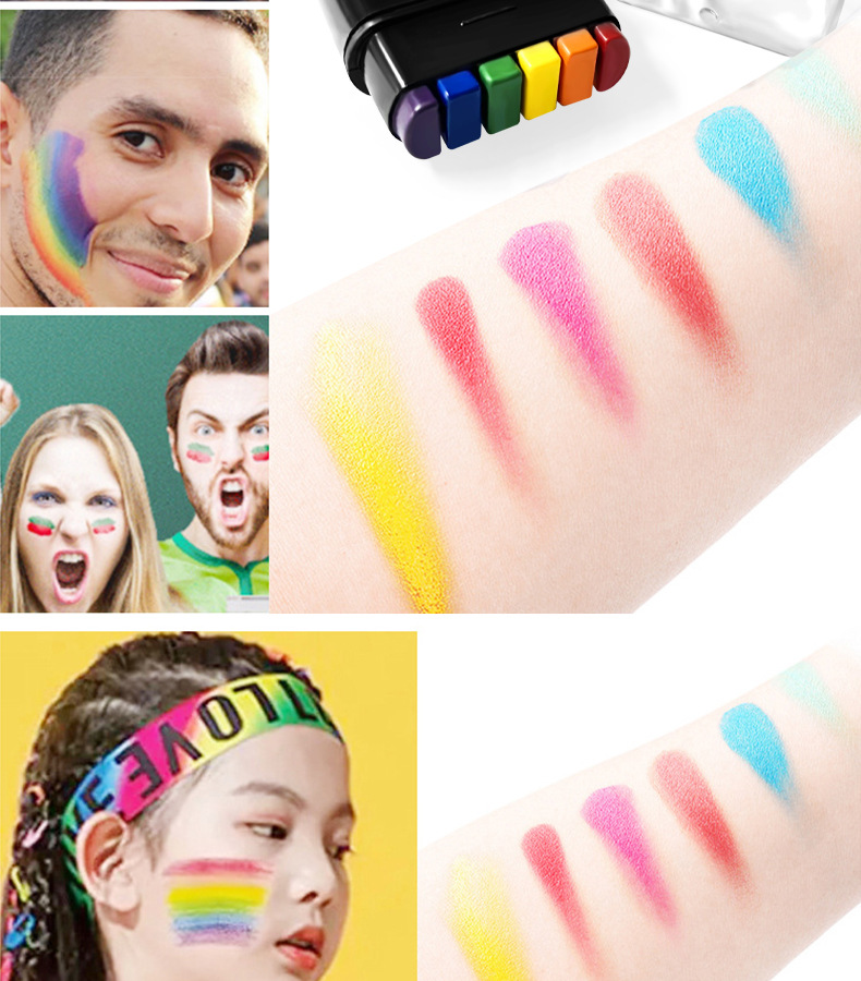 국경 6 색 바디 페인팅 얼굴 컬러 월드컵 무지개 얼굴 페인팅 오일 페인트 팬 낙서 얼굴 색상