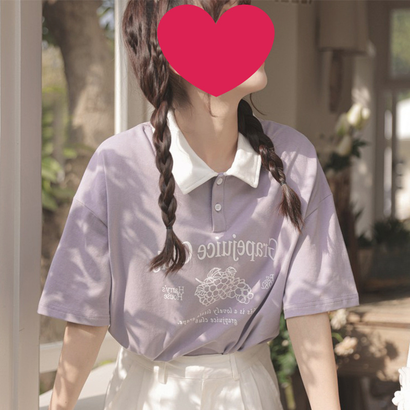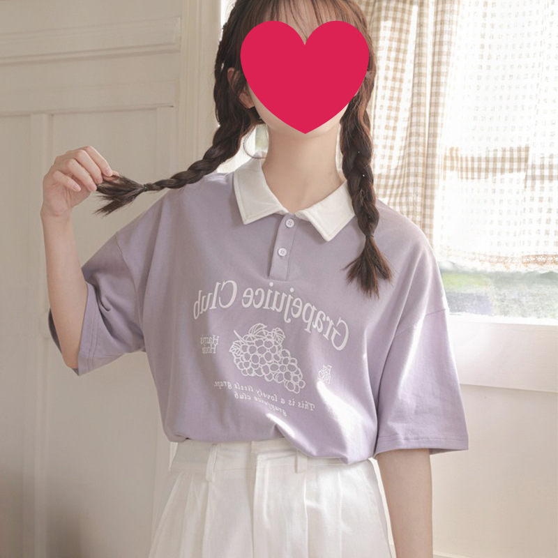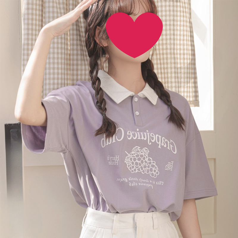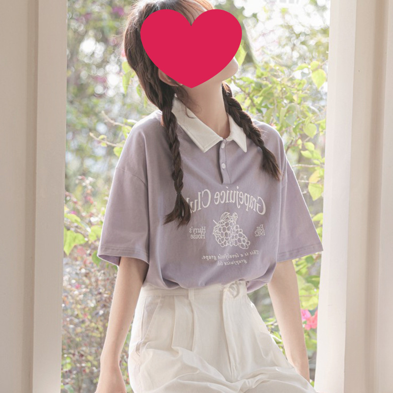 Saltable Sweet Age-reducing Polo 셔츠 티셔츠 소녀 대학 스타일 학생 옷깃 반소매 느슨한 반소매 올매치 탑스토어 가기