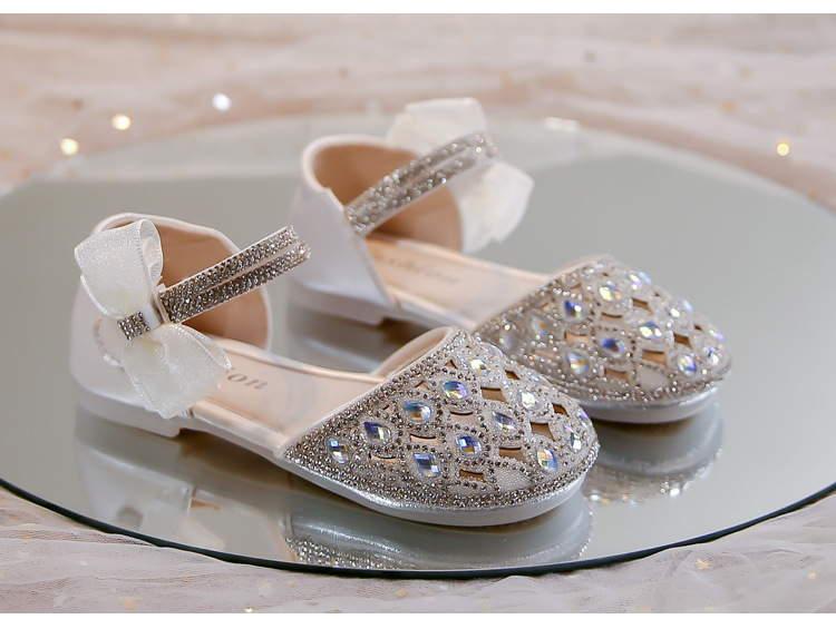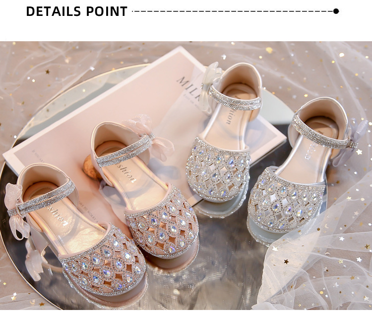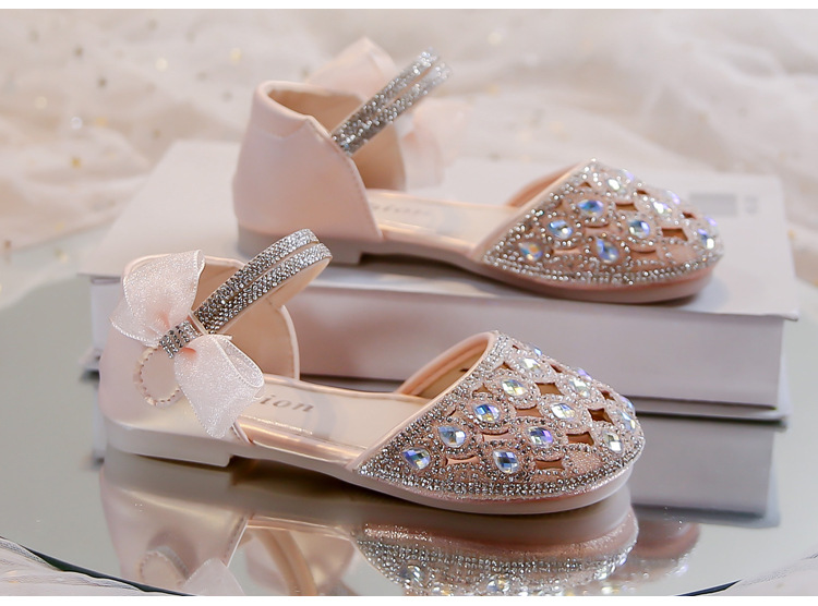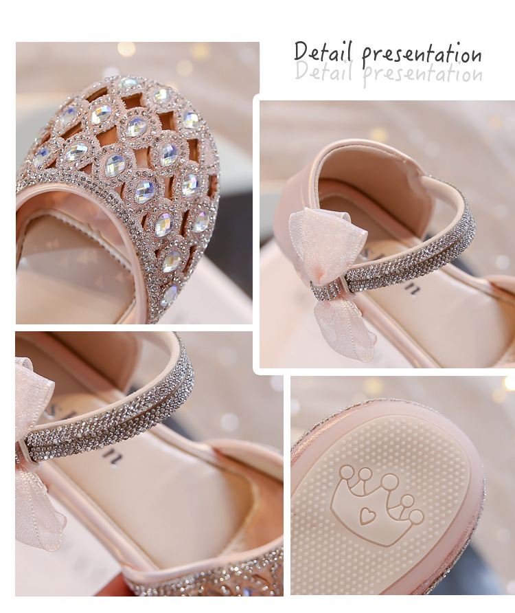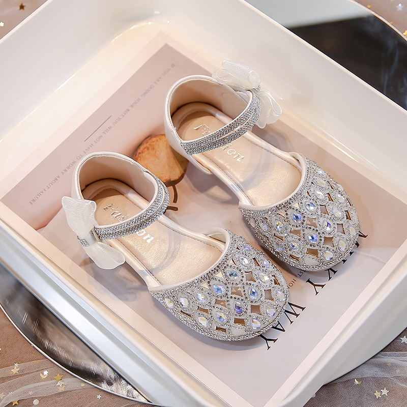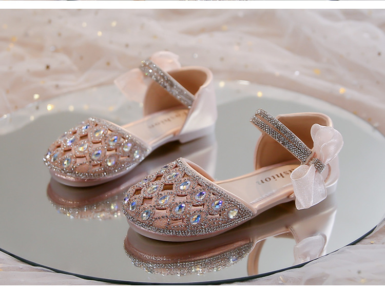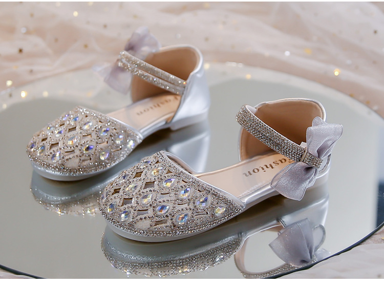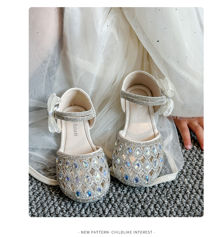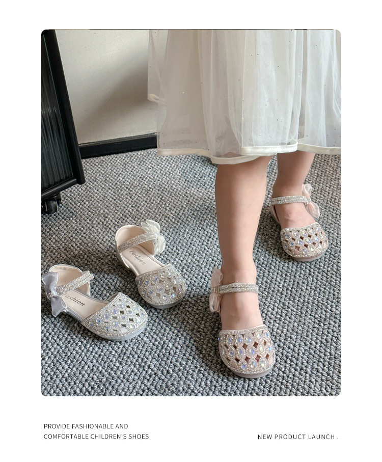 여아용 워터 다이아몬드 장식 공주 신발 2026년 여름 메쉬 리본 여아용 반샌들 크리스탈 공연 신발스토어 가기